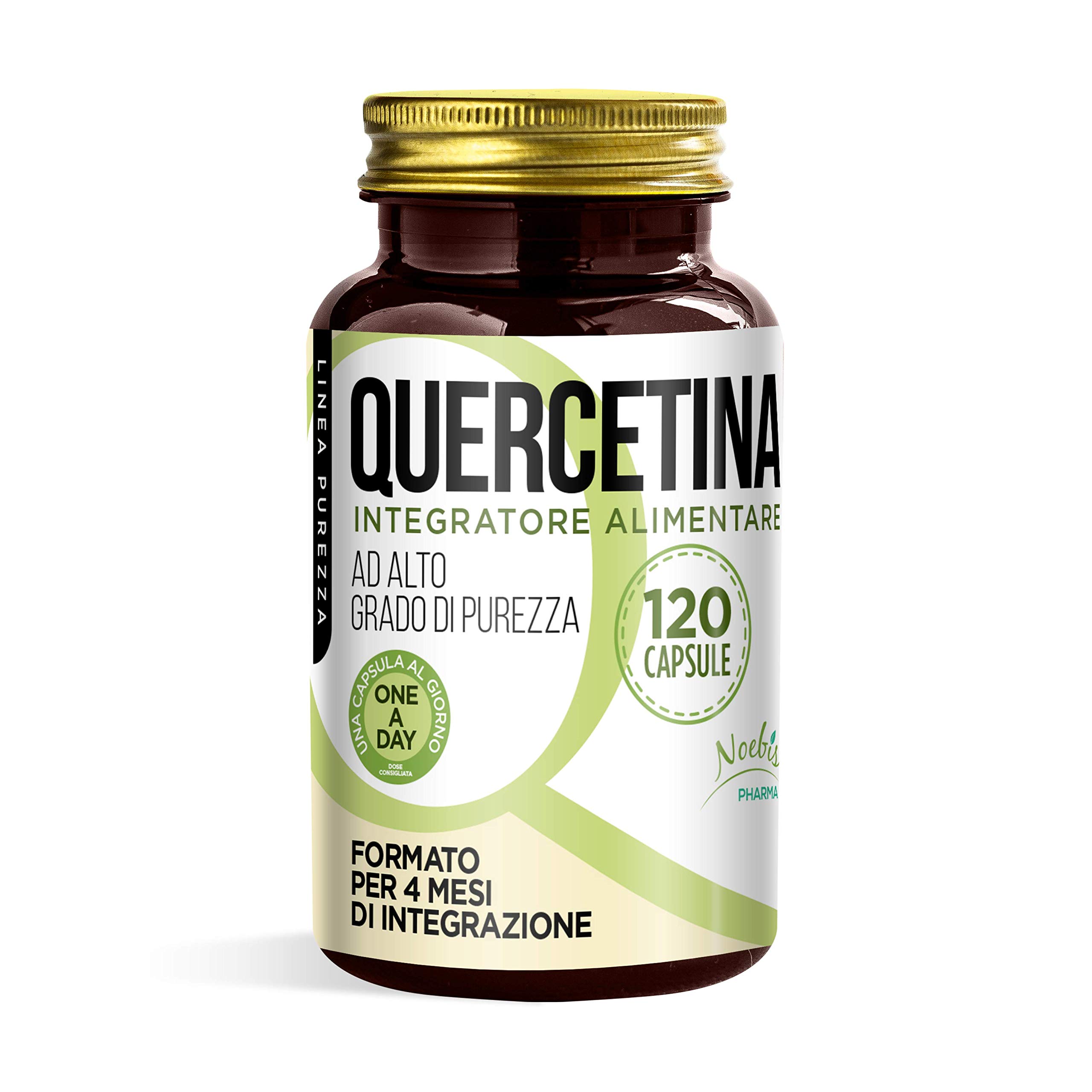 Quercetina Noebis Pharma is a high-quality, pure oak-based supplement. The supplement provides 200 mg of quercetin per daily dose (one capsule per day). It therefore offers excellent value for money. While not widely known, quercetin is an important component of our diet. It belongs to the flavonoid family, pigments that give color to flowers, fruits, and legumes. More specifically, quercetin is a flavonol (a tetraoxyflavonol) recognizable by its bright yellow color. It is found in a wide variety of medicinal plants, including horse chestnut, calendula, hawthorn, chamomile, St. John's wort, and ginkgo biloba. It is also present in many foods such as capers, yellow peppers, tomatoes, raw onions, leafy green vegetables, tea, and red wine. In nature, quercetin is not found in its isolated form but as the aglicone (non-sugar portion) of various glycosides, including rutin and chetretin. Diet alone may not be sufficient to meet normal quercetin requirements, and therefore, a supplement of this nutrient may be necessary. For optimal quercetin benefits, it is generally recommended to take 200 mg daily for a limited period. Noebis Pharma, a dynamic company constantly and tirelessly dedicated to the research of innovative, high-value, and effective solutions for well-being, and driven by the desire to satisfy an incregly demanding public attentive to health and purity standards, now offers a truly special supplement based on high-quality, pure quercetin. It comes in vegan capsules and contains 200 mg of oak per capsule, to be taken once a day. INDICATIONS 1 capsule per day INGREDIENTS Quercetin (from Sophora Japonica L. leaves) powder, vegetable capsule (hydroxypropylmethylcellulose, E170, E1450), microcrystalline cellulose (E460i), anti-caking agents: colloidal silica and magnesium salts of fatty acids DIRECTIONS Directions: 1 capsule per day SAFETY WARNING Keep out of reach of children under three years of age. Food supplements should not be considered a substitute for a varied and balanced diet and a healthy lifestyle. Do not exceed the recommended daily dose. During pregnancy, breastfeeding, or while taking medication, consult your doctor before using this product. Not recommended for children. Store the product in a cool, dry place away from heat, light, and humidity. Best before the date indicated on the bottle, in its original packaging and stored correctly. DISCLAIMER Warnings: Keep out of reach of children under three years of age. Food supplements should not be considered a substitute for a varied and balanced diet and a healthy lifestyle. Do not exceed the recommended daily dose. During pregnancy, breastfeeding, or while taking medication, consult your doctor before using this product. Not recommended for children. Store the product in a cool, dry place away from heat, light, and humidity. The batch number and expiration date are indicated on the bottle cap. See moreVegan capsules for an authentic, nature-friendly product. Made in Italy: care and love at every stage of production. Incredible value: superior quality for a 4-month supply. High dosage – 200 mg of Quercetin in each capsule for a boost of well-being. High quality and purity – Noebis Pharma oak capsules provide our bodies with the optimal amount of the valuable polyphenol Quercetin.Quercétine 120 gélules - 200 mg pour 1 gélule - Haut degré de pureté - 4 mois d'intégrationDESCRIPTION DU PRODUIT DESCRIPTION DU PRODUIT Quercetina Noebis Pharma est un complément à base de chêne de haute qualité et pureté. Le complément fournit le dosage de 200 mg de Quercétine par dose quotidienne (une capsule par jour). Il s'avère donc être un supplément avec un excellent rapport qualité-prix. Peu connue du public, la Quercetine est cependant un élément important de notre alimentation. Il fait partie de la famille des flavonoïdes, pigments qui donnent leur couleur aux fleurs, fruits et légumineuses. La Quercétine fait plus précisément partie des flavonols (c'est un tétraoxyflavonol) reconnaissables par leur couleur jaune brillant. Il est présent dans une grande variété de plantes officinales, y compris le marronnier, le calendula, l'aubépine, la camomille, le millepertuis et le ginkgo biloba. Il se trouve également dans de nombreux aliments tels que les câpres, les poivrons jaunes, les tomates, les oignons crus, les légumes à feuilles vertes, le thé et le vin rouge. Dans la nature, la quercétine n'est pas présente sous forme isolée mais comme aglicone (partie non sucrée) de divers glycosides, y compris la rutine et le chêtrine. L'alimentation seule peut ne pas être suffisante pour supporter les besoins normaux en chêne et donc on peut recourir à un complément de ce nutriment. Pour les meilleurs bénéfices de la quercétine, il est généralement recommandé de prendre 200 mg par jour pendant une période limitée. Noebis Pharma, entreprise dynamique et constamment dédiée sans relâche à la recherche de solutions innovantes et de grande valeur et efficacité pour le bien-être, dans le désir de satisfaire un public toujours plus exigeant et attentif aux paramètres de santé et de pureté propose aujourd'hui un complément vraiment spécial à base de Quercétine de haute qualité et pureté. Elle se présente en capsules végétaliennes et contient 200 mg de chêne pour chaque gélule à prendre une seule fois par jour INDICATIONS 1 gélule par jour INGRÉDIENTS Quercétine (de Sophora Japonica L. feuilles) poudre, capsule végétale (hydroxypropylméthylcellulose, E170, E1450), cellulose microcristalline (E460i), agents antiagglomérants : silice colloïdal et sels de magnésium des acides gras MODE D'EMPLOI Mode d'emploi : 1 gélule par jour AVERTISSEMENT DE SÉCURITÉ Tenir hors de portée des enfants de moins de trois ans. Les compléments alimentaires ne doivent pas être considérés comme un substitut d'une alimentation variée, équilibrée et d'un mode de vie sain. Ne pas dépasser la