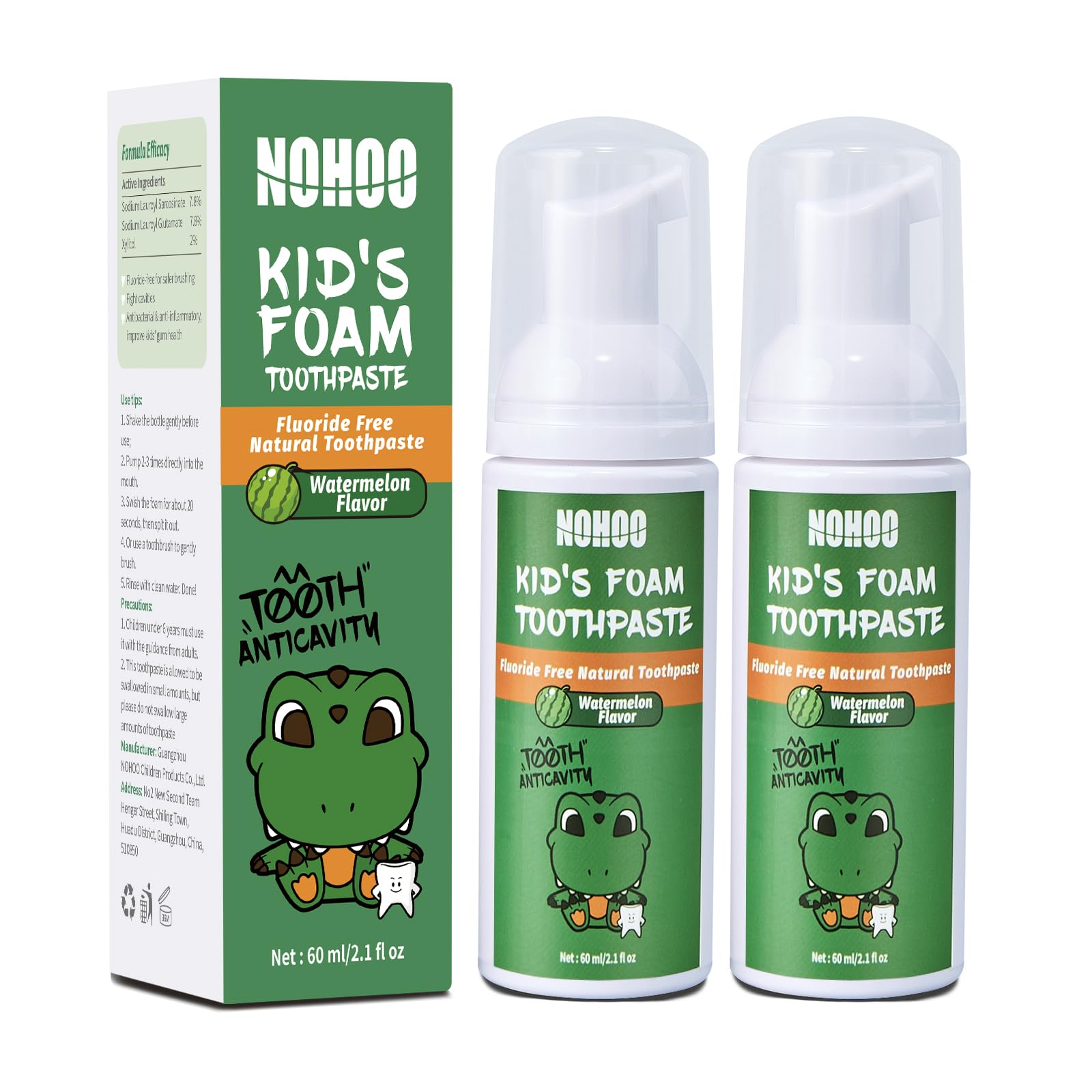 NOHOO Fluoride Free Foam Toothpaste Kids Watermelon Natural Training Toothpaste for Baby Toddler Children Oral Cleaning and Cavity Protection(2 Pack) Watermelon 2.1 Fl Oz (Pack of 2)