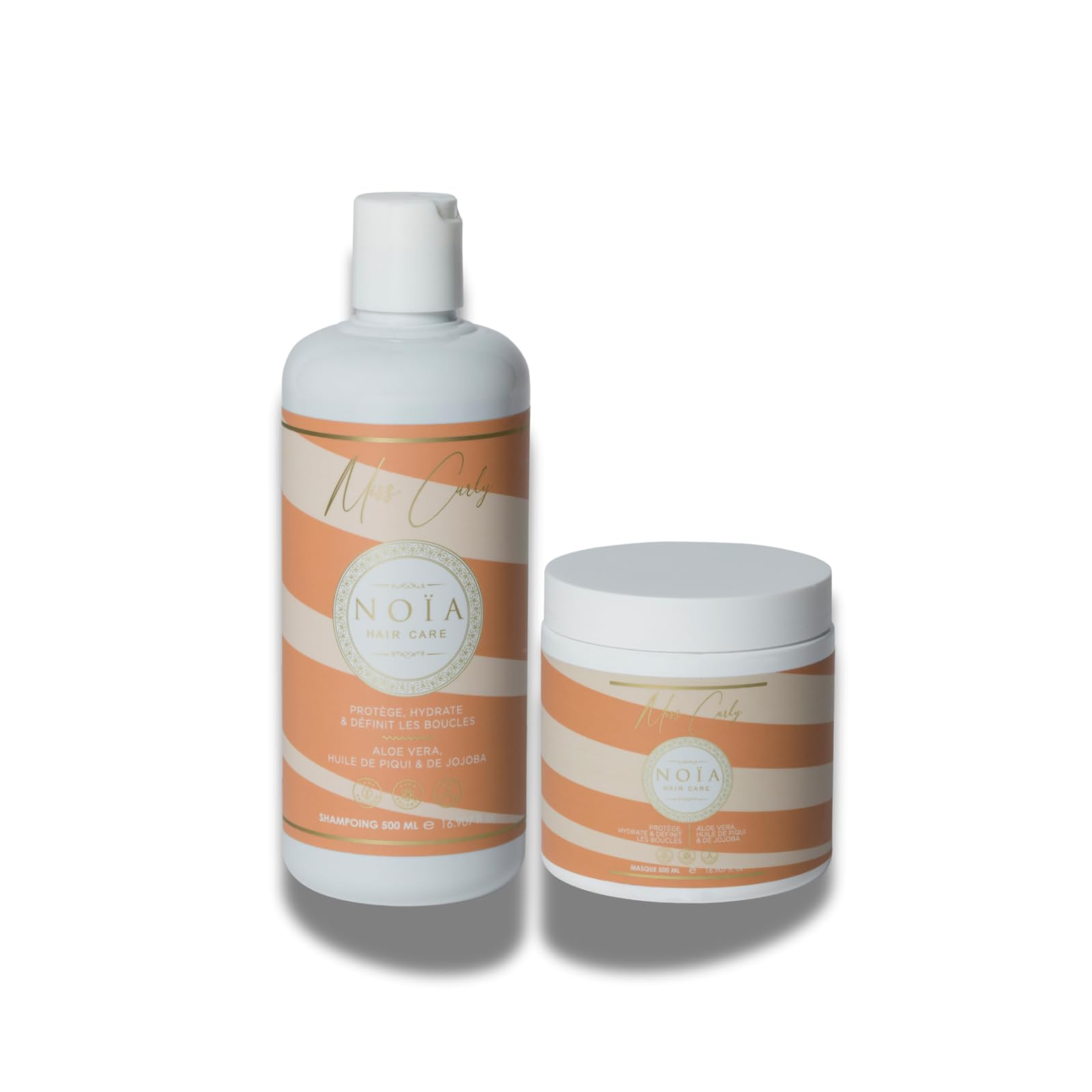 Discover the Miss Curly DUO Hair Routine from Noïa Hair, specially formulated to hydrate, define, and enhance curls thanks to a trio of natural ingredients: Aloe Vera, Piqui Oil, and Jojoba Oil ? Shampoo 500ml – Gently cleanses, hydrates, and prepares curls without weighing them down. Mask 500ml – Intensely nourishes, improves elasticity, and perfectly defines curls. Result: bouncy, supple, hydrated, and perfectly defined curls, while reducing frizz. SAFETY WARNING In case of contact with eyes, rinse with clean water500ML SIZES – Two generous treatments for a long-lasting moisturizing routine, at home or in the salon. DEFINITION FLUIDITY – Enhances the natural shape of curls, making them bouncy and easier to style. PIQUI JOJOBA OIL – Nourishes the hair fiber, improves elasticity, and helps reduce frizz. MOISTURIZING ALOE VERA – Soothes, deeply hydrates, and keeps curls soft and shiny. SPECIAL CURL DUO – Shampoo mask designed to hydrate, define, and enhance curly, wavy, or coily hair.NOÏA HAIR – Pack Duo MISS CURLY – Shampoing 500ml Masque 500ml – Aloe Vera, Piqui Jojoba – Hydratation Intense, Définition Anti-Frisottis – Routine Professionnelle Cheveux BouclésDESCRIPTION DU PRODUIT DESCRIPTION DU PRODUIT Découvrez la Routine Capillaire DUO Miss Curly de Noïa Hair, spécialement formulée pour hydrater, définir et sublimer les boucles grâce à un trio d'ingrédients naturels : Aloe Vera, Huile de Piqui et Huile de Jojoba ? Shampoing 500ml – Nettoie en douceur, hydrate et prépare les boucles sans les alourdir. Masque 500ml – Nourrit intensément, améliore l'élasticité et définit parfaitement les boucles. Résultat : des boucles rebondies, souples, hydratées et parfaitement définies, tout en réduisant les frisottis. AVERTISSEMENT DE SÉCURITÉ En cas de contact avec les yeux rincer a l'eau claireFORMATS 500ML – Deux soins généreux pour une routine hydratante longue durée, à domicile ou en salon. DÉFINITION SOUPLESSE – Améliore la forme naturelle des boucles, les rend plus rebondies et faciles à coiffer. HUILE DE PIQUI JOJOBA – Nourrissent la fibre, améliorent l'élasticité et aident à réduire les frisottis. ALOE VERA HYDRATANT – Apaise, hydrate profondément et maintient les boucles souples et brillantes. DUO SPÉCIAL BOUCLES – Shampoing masque conçus pour hydrater, définir et sublimer les cheveux bouclés, ondulés ou frisés.