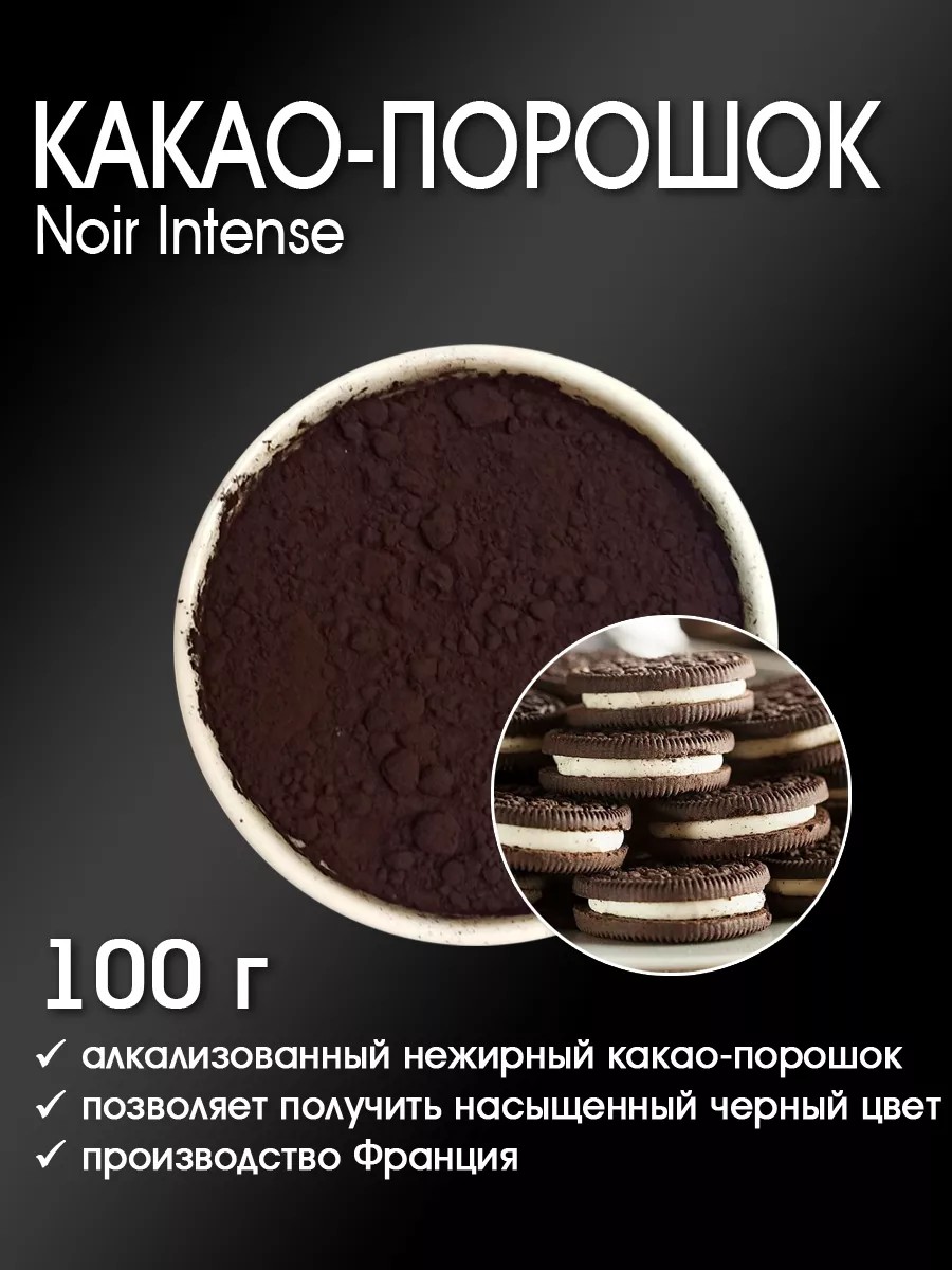 Специальный какао-порошок Noir Intense позволяет получить максимально насыщенный черный цвет изделия. Имеет насыщенный и горький вкус какао с нотками печенья с цветочным и кунжутным ароматом. Глубокий угольно-черный цвет. Придает изумительный темный цвет хлебобулочным изделиям, например, сухому печенью, или кондитерским изделиям, таким как бисквит Joconde. Изготовлен из отборных какао-бобов премиум-класса. Содержание жира 10-12%. ультратонкий помол.