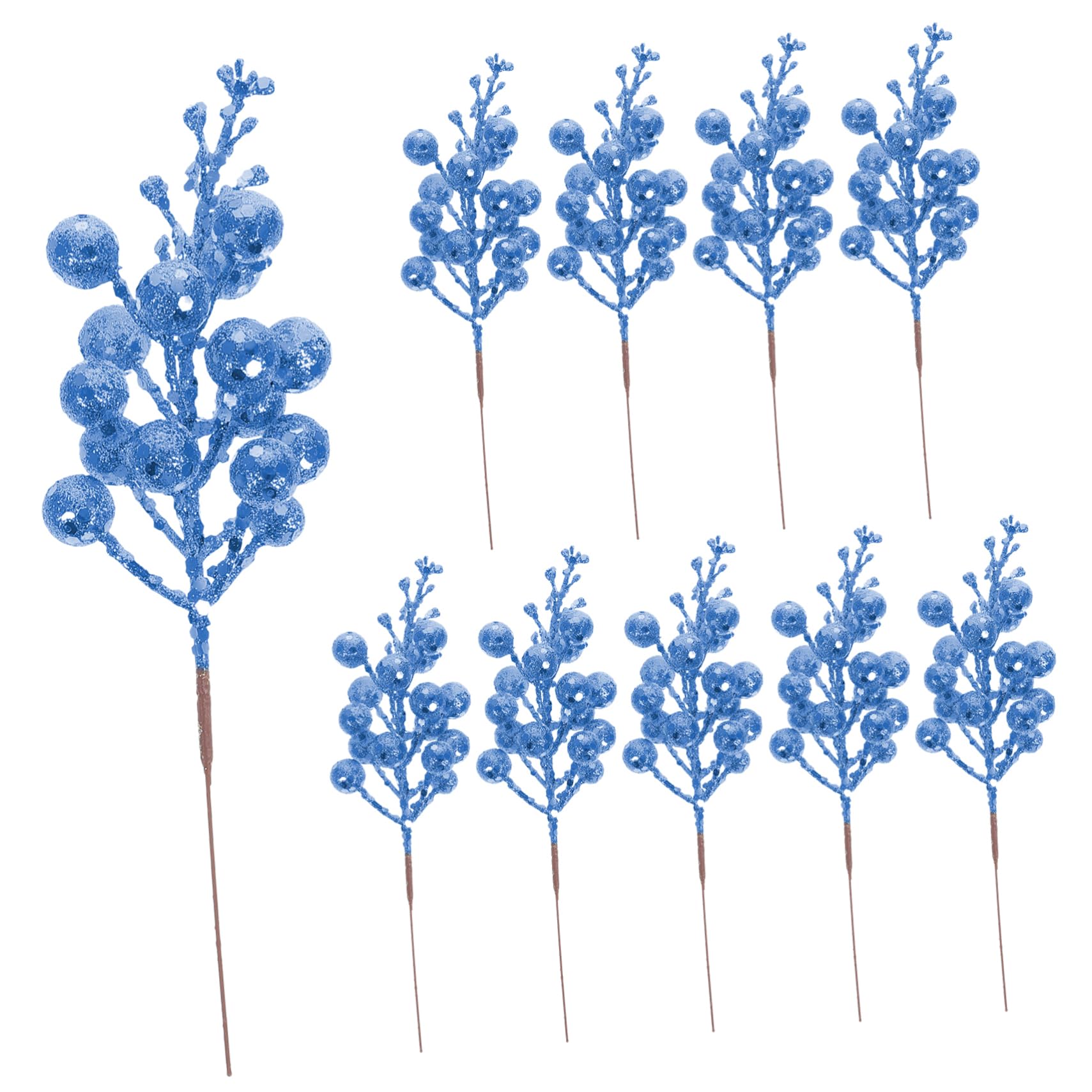NOLITOY 10pcs Christmas Imitation Berries Blue Berry Stems Christmas Picks Decorative Sticks Faux Berry Rose Decorations Artificial Berry Stem Foam Christmas Tree and Silver Blue 19X5X5CM