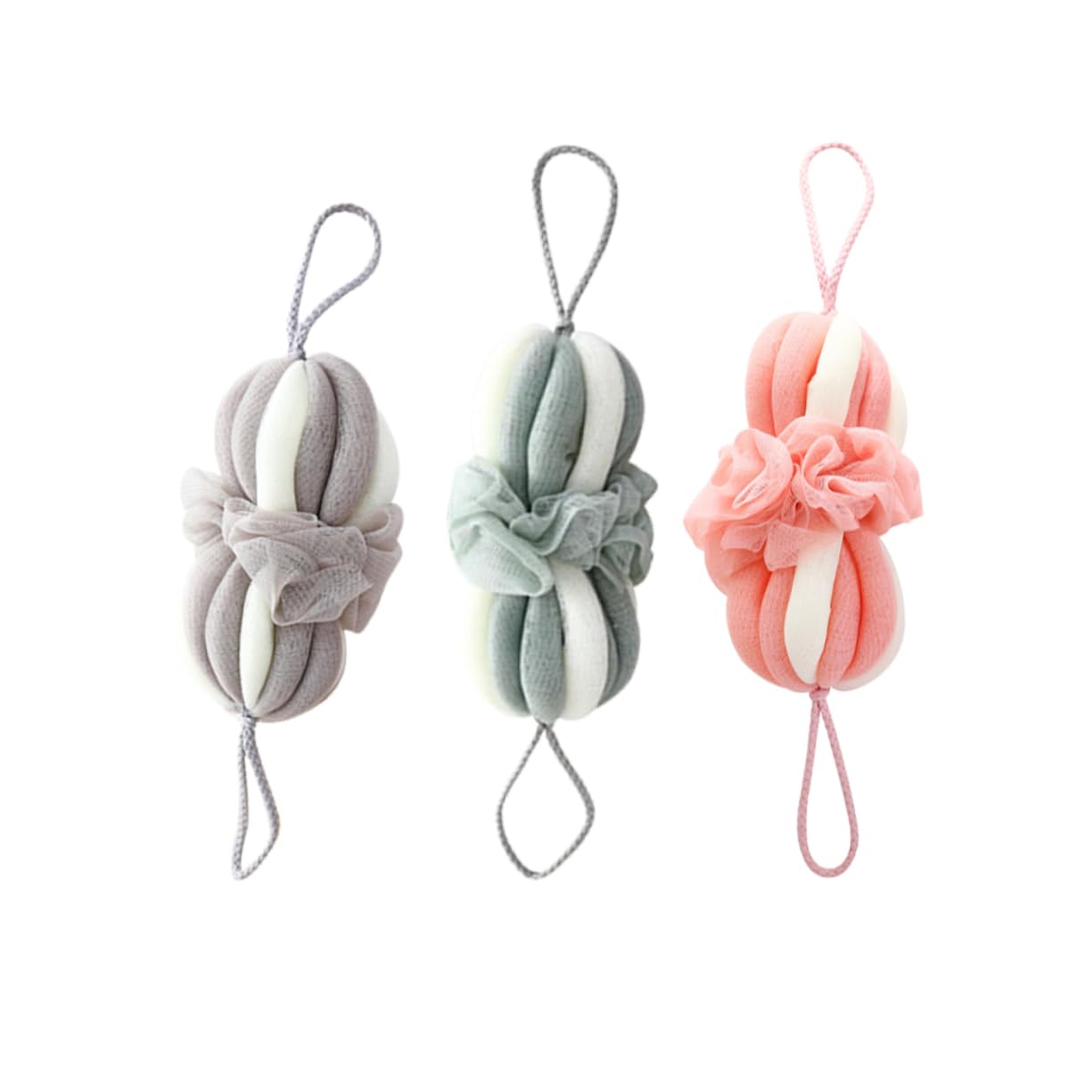 Package Include 3 x bath balls Characteristics - Color: Pink and White, Grey and White, Green and White bath scrubber. - Size:about 43x5x5cm Shower Ball. - Material: Nylon body . - and comfortable feeling bath ball Bath Bubble Net. - Also can help relax yourself and let you enjoy the shower mesh bath sponge. - The bath ball is made of material for durable and long lasting use body scrub. - Simply apply shower gel or soap on the bath lily to product rich to completely clean body skin without causing any damage to the skin bath loofah. - The shower ball comes with a short rope for convenient to use and hang bath scrub. Goods Information exfoliating body puff This item is a double color design and practical shower bath ball , which is made of durable nylon and can be matched with the shower gel and soap to produce rich for completely cleaning body skin without causing any damage to the skin.mesh puff scrubber The mesh sponge can also help relax yourself and let you enjoy the shower.body wash loofah With quick-dry mesh design and easy to use, it is really a wonderful bath supplies for choice
