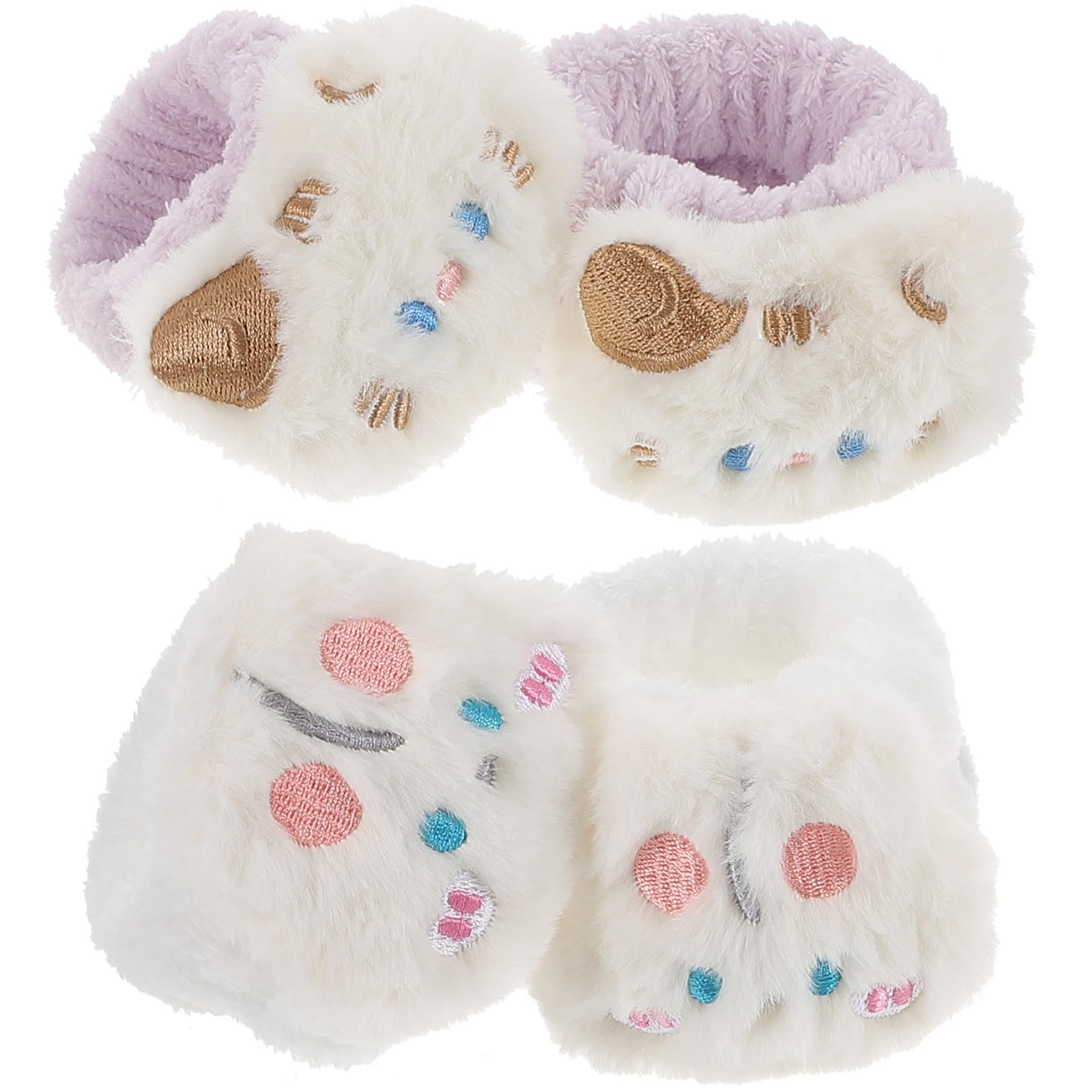 NOLITOY Lot de 4 Bracelets Absorbants en Polaire Douce Lavage du Visage Bande de Lavage du Visage Confortable et Portable Accessoires de Soins Peau pour Maison Motifs Chat et Lapin