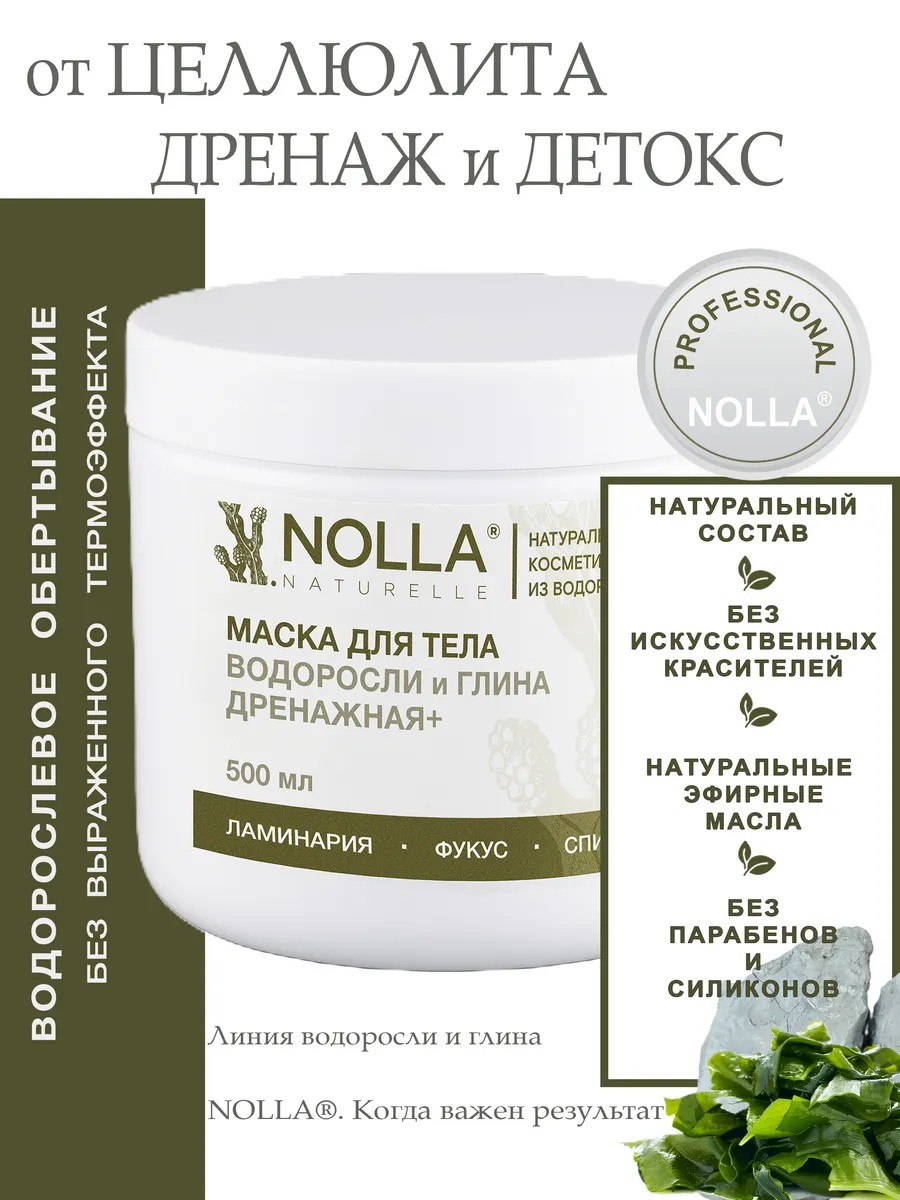 NOLLA naturelle ® Маска обертывание Дренажная+ Водоросли и Глина