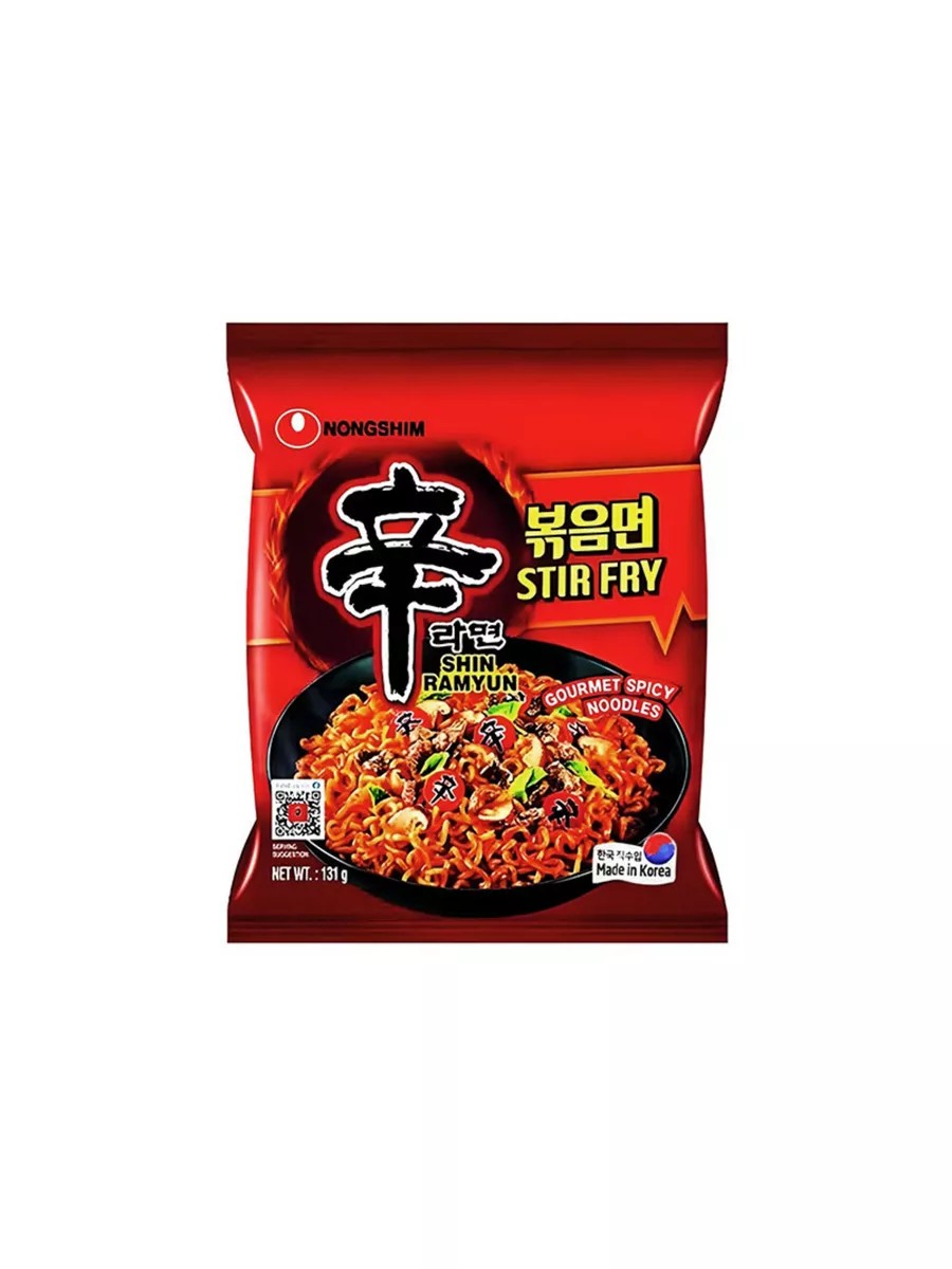 Nongshim Shin Ramen Stir Fry Noodles, 131g. Instant noodles from the South Korean company Nongshim are a very popular product not only in South Korea but also around the world. Thick, elastic noodles with a classic spicy taste. A large portion of a nutritious lunch! Ingredients: noodles: wheat flour, vegetable oil (contains antioxidant (307B)), starches, salt, mineral salts (501, 500, 339, 452), emulsifier (405, 322 (soy)), green tea extract; Soup powder: sugar, flavor enhancers (621, 640, 627, 631, 363), maltodextrin, salt, spices, hydrolyzed vegetable protein (soy, corn), thickener (414), vegetables, glucose, starches, yeast extract, vegetable oils (soy), color (150), citric acid, soy sauce, flavorings; Flavoring oil: vegetable oils, vegetables, spices, flavorings, soy sauce (wheat); Flakes: vegetables, fish, starches (wheat), soy, sweeteners (420, 422), soy sauce, glucose, sugar, salt, flavorings, maltodextrin, flavor enhancers (363, 640, 627, 631), spices. Allergen Information: Contains gluten, soy derivatives, and traces of milk derivatives, fish, crustaceans, shellfish, sesame, and peanuts. Nutritional value per 100 g: 461 kcal/1930 kcal, 8.4 g protein, 17.1 g fat, 68 g carbohydrates. Shelf life: 12 months.