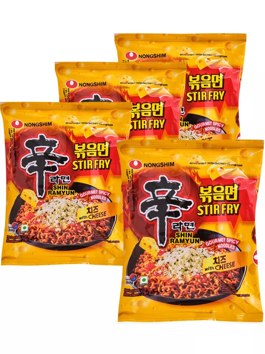Лапша Нонгшим Шин Рамен с сыром STIR FRY, 4шт х 136г, Корея