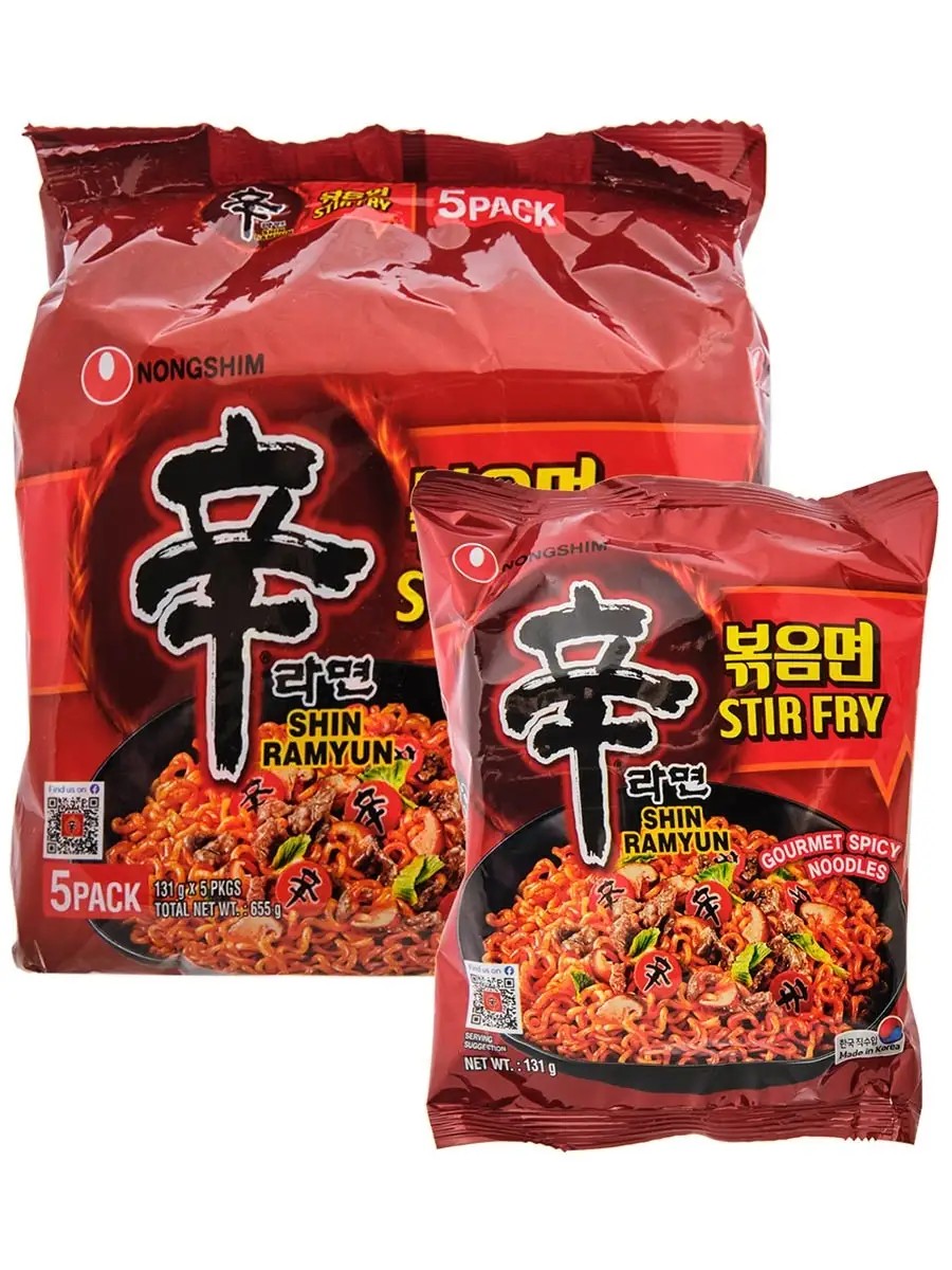| Included | Korea; Nongshim Shin Ramen Noodles (STIR FRY) 5 pcs., 131 g each. |