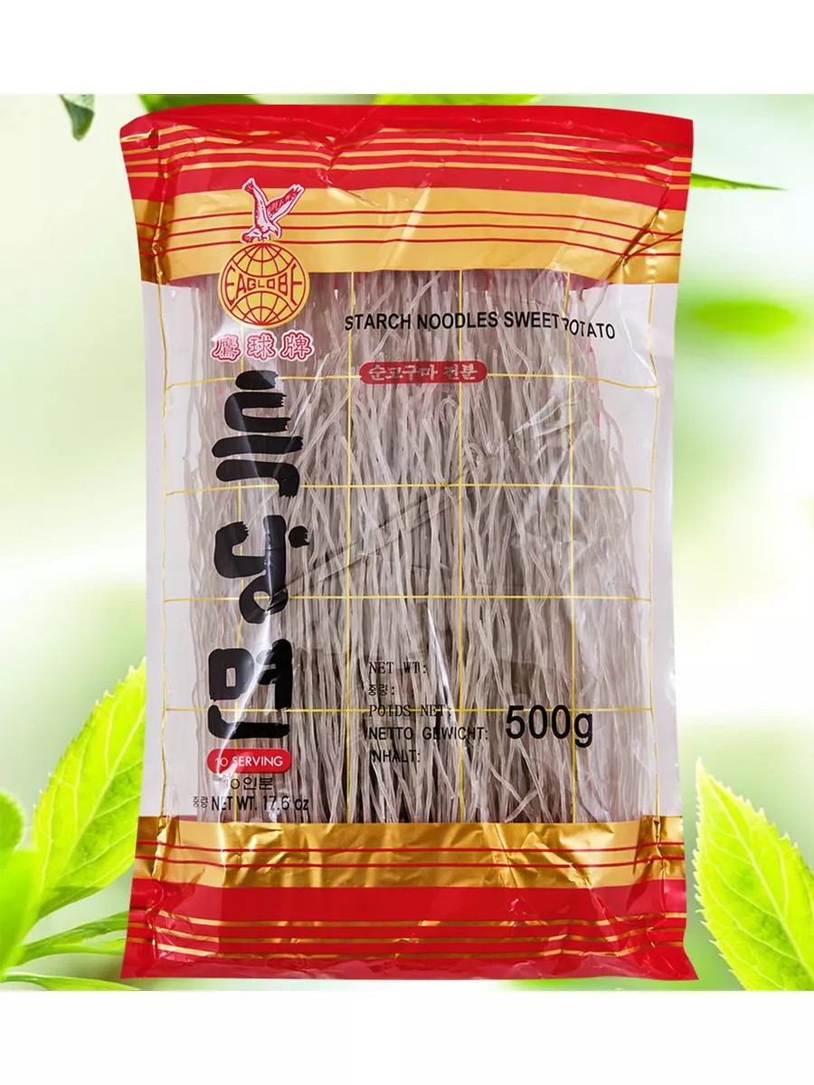 Sweet potato vermicelli 500g. Calcium, Calcium, Fat, Carbohydrates (Kcal): 0.001g/84.00g/349.00g. Shelf life: 24 months. Store in a sealed container at a temperature not exceeding 35°C and humidity up to 70%. Avoid direct sunlight. Ingredients: sweet potato, drinking water.