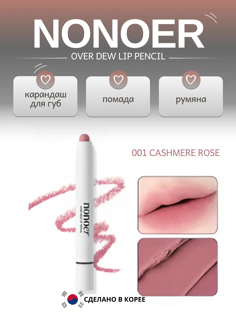 Корейский бренд Nonoer сосредоточен на то, чтобы подчеркнуть естественную красоту и выделить ее. Nonoer помогает сиять своим естеством — улучшая то, что подходит вам лучше всего и чего вы больше всего желаете. От самых простых моментов до самых ярких, Nonoer всегда рядом с вами, делая каждый момент прекрасным. Настоящая замшевая текстура стойкого карандаша для губ обеспечивает мягкое покрытие, которое хорошо тушуется, но не размазывается после фиксации. Мягкая текстура нежно тает при температуре кожи, а акварельная растушевка обеспечивает элегантный макияж. Карандаш сделан в приглушенных нюдовых оттенках для макияжа губ, щек, век. Легкие оттенки карандаша для губ можно смешивать между собой. Способ применения: нанесите на желаемые области, включая губы и щеки, а затем аккуратно растушуйте.