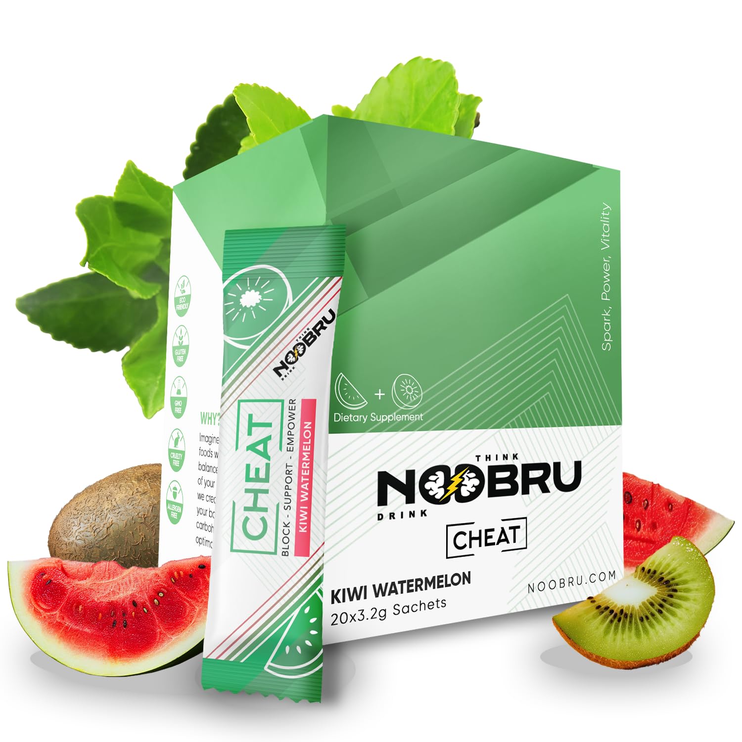 Noobru Cheat Carb Blocker Supplement Kiwi Watermelon Drink Mix | 13 Ingredients | Turbocharge Your Metabolism Weight Management Mental Clarity & Metabolism Support