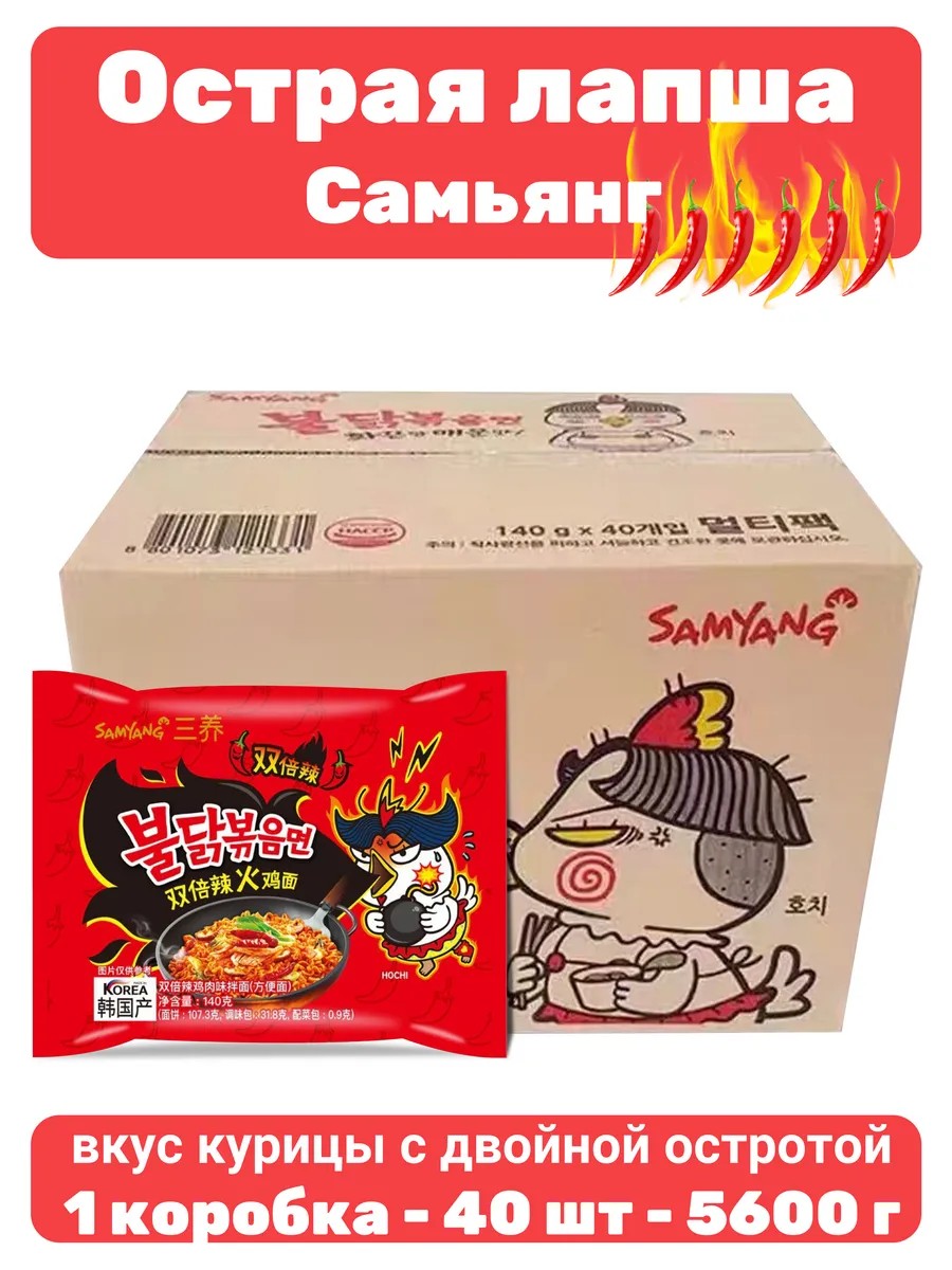 Buldak Samyang instant noodles with very hot chicken-flavored sauce DOUBLE SPICE 40 pcs - 5600 g.