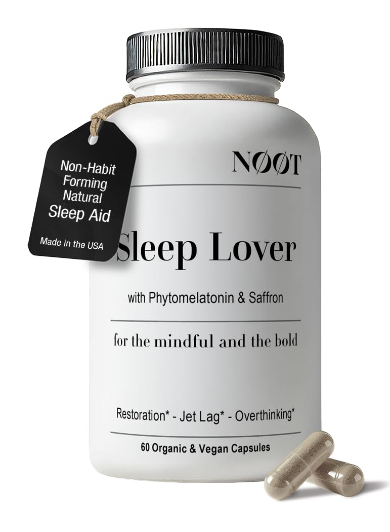 MADE IN USA, NO ADDITIVES, NON-GMO, LAB TESTED: Every NØØT supplement is third-party tested, lab-tested, BPA-free, microplastic-free ethically produced in eco-recycled bottles. Crafted with no fillers, no additives, no sugars no hormones for purity, integrity, conscious wellness exceptional quality. REDUCES RESTLESSNESS OVERTHINKING: This powerful non-habit forming formula helps you fall asleep faster stay asleep longer. With Lemon Balm L-Theanine, it promotes relaxation, eases restlessness, calms the mind supports restful, restorative sleep cycles for refreshed mornings. PRIMAL SLEEP SUPPORT: This natural sleep supplement blends Magnesium Bisglycinate for muscle relaxation with Ashwagandha to ease stress balance cortisol. Saffron helps you settle into sleep with emotional calm, while Vitamin B6 helps maintain neurotransmitter balance for deeper rest a refreshed morning. ALL NATURAL POWERFUL FORMULA: This non-habit forming, science-backed sleep aid blends Lemon Balm Magnolia for relaxation, Ashwagandha to ease stress balance cortisol, and L-Theanine Passionflower to support healthy deep-sleep cycles. Plant-based Phytomelatonin helps maintain circadian rhythm promote smoother sleep, even during travel. SLEEP LOVER, FALL ASLEEP, STAY ASLEEP: This natural sleep supplement for adults and students blends calming herbs to promote relaxation, balanced rest deeper sleep cycles. It helps maintain restorative sleep recovery, reduces restlessness overthinking, helps maintain circadian rhythm also ideal for occasional jet lag.
