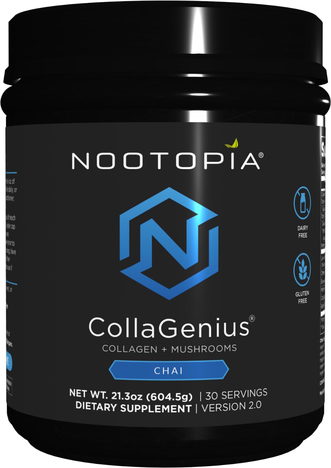 Nootopia Collagenius v2.0 Brain Supplement Lion s Mane Chaga Cordyceps Reishi Collagen Peptides & Superfoods Supports Focus Memory Energy Immune Health Anti-Aging Nootropic Powder 30 Servings Unflavored 30 Servings