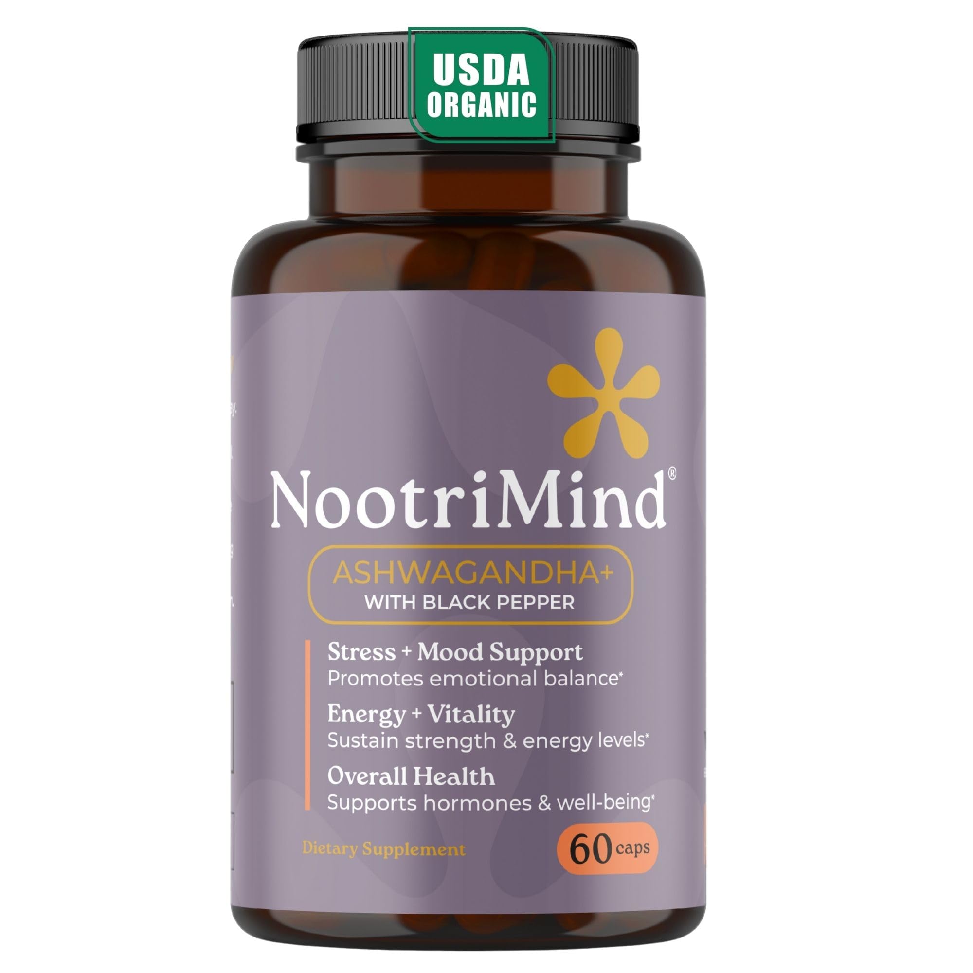 nootrimind Organic Ashwagandha Capsules 1300mg Daily Serving (Withania Somnifera) with Black Pepper Root Powder + Extract Relaxation & Mood Support Supplement Vegan Non-GMO 60 Count