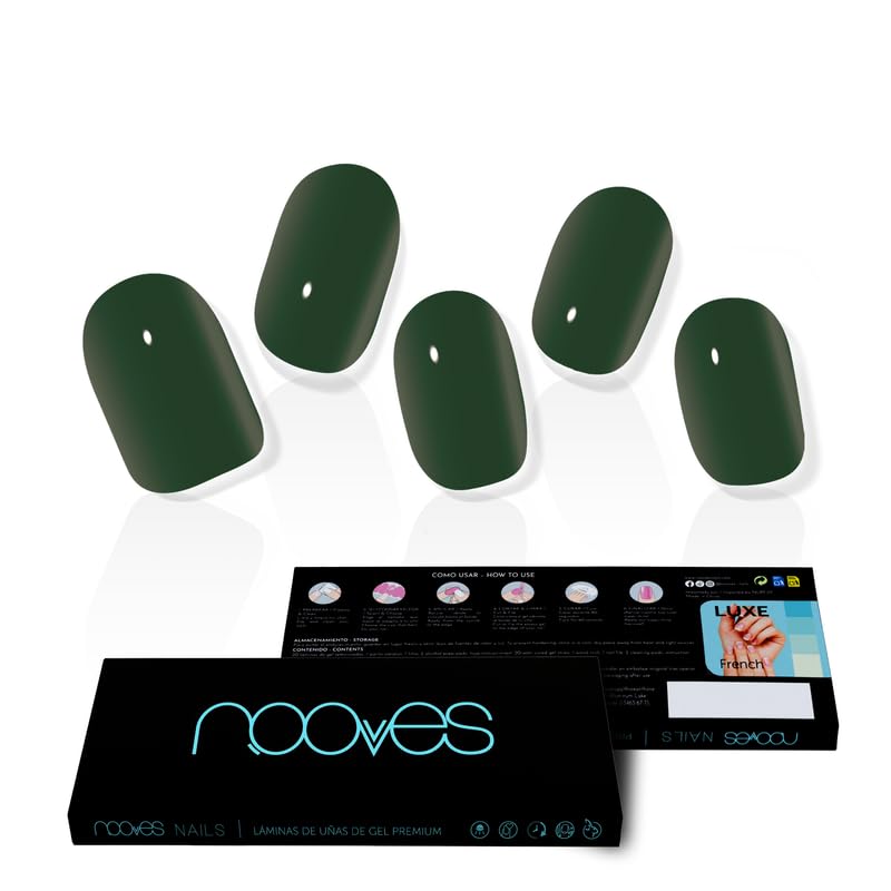 NOOVES - 20-Sheet Gel Nail Wraps - Dark Green - Green - 20 Premium Semi-Cured Gel Nail Stickers, 1 Nail File, and 1 Orange Peel, Vegan. Includes 20 premium semi-cured gel sheets, 1 orange peel, 1 nail file, and 2 alcohol wipes. Achieve a salon-quality manicure at home. Ideal for brittle, damaged, or allergy-prone nails: NOOVES gel nail wraps provide a protective layer, strengthening and protecting nails from further damage—an extra step compared to adhesive nail stickers or gel nails. Our vegan nail wraps are the perfect choice for those seeking a long-lasting, high-quality manicure that withstands daily wear and tear, ensuring your nails stay flawless for longer. They also act as a protective layer, strengthening your natural nails and preventing damage. They are very easy to apply thanks to their self-adhesive design and are easy to cut, allowing you to adjust their size to your nails without any problem. Our films are 100 vegan and cruelty-free. Enjoy a manicure that lasts for weeks without the need for constant touch-ups. Get professional results without leaving home.How to install them? 1. Prepare your nails. 2. Select the size. 3. Apply the film to the nail without touching the cuticle. 4. Trim with nail clippers and then file off any excess gel. 5. Cure under a UV LED nail lamp for 60 to 120 seconds. Spanish brand: perfect for brittle, damaged, or allergic nails: NOOVES gel nail sheets provide a protective layer for nails, strengthening them and protecting them from further damage—an extra step compared to adhesive nail stickers or gel nail stickers. Gel nails: they have great durability (up to 3 weeks), protect your natural nail without damaging it, are very easy to apply thanks to their self-adhesive design, and are easy to cut, allowing you to adjust their size to your nails without any problems. Contents: This nail foil pack includes 20 premium semi-cured gel sheets for French manicure, 1 orange stick, 1 nail file and 2 alcohol pads.NOOVES Nails Vernis à ongles gel semi-durci Premium Dark Green VertDESCRIPTION DU PRODUIT NOOVES - Lot de 20 feuilles de gel pour ongles - Vert foncé - Vert - 20 feuilles de gel semi-durci Premium, gel Nail Stickers, 1 lime à ongles et 1 bâtonnet d'orange, végétalien. Comprend 20 feuilles de gel semi-durci premium, 1 bâtonnet d'orange, 1 lime et 2 tampons d'alcool. Vous aurez une manucure de salon en salon à la maison. Idéal pour les ongles cassants, abîmés ou allergiques : les feuilles à ongles en gel NOOVES offrent une couche protectrice aux ongles, les renforçant et les protégeant des dommages supplémentaires, une étape supplémentaire par rapport aux autocollants pour ongles adhésifs ou aux ongles en gel. Nos feuilles d'ongles végétaliennes sont le choix parfait pour ceux qui recherchent une manucure durable et de haute qualité, résistante à l'usure quotidienne, garantissant que vos ongles restent impeccables plus longtemps. En outre, ils agissent comme une couche protectrice, renforcent vos ongles naturels et évitent les dommages. Ils sont très faciles à appliquer grâce à leur design auto-adhésif et sont faciles à couper, vous permettant d'ajuster leurs tailles à vos ongles sans aucun problème. Nos films sont 100 végétaliens et sans cruauté envers les animaux. Profitez d'une manucure qui dure des semaines sans avoir besoin de retouches constantes. Obtenez un résultat professionnel sans quitter la maisonComment les installer ? 1. Préparez vos ongles. 2. Sélectionnez la taille. 3. Appliquer le film sur l'ongle sans toucher la cuticule. 4. Coupez avec un coupe-ongles puis limez l'excédent de gel. 5. Laissez durcir sous la lampe à ongles LED UV pendant 60 à 120 secondes. Marque espagnole : parfaits pour les ongles cassants, endommagés ou allergiques : les feuilles d'ongles en gel NOOVES offrent une couche protectrice aux ongles, les renforçant et les protégeant contre les dommages supplémentaires, une étape supplémentaire par rapport aux autocollants pour ongles adhésifs ou gel nails stickers. Ongles en gel : ils ont une grande durabilité (jusqu'à 3 semaines), protègent votre ongle naturel sans l'endommager, sont très faciles à appliquer grâce à leur design auto-adhésif et sont faciles à couper permettant d'ajuster leurs tailles à vos ongles sans aucun problème. Contenu : ce pack de feuilles à ongles comprend 20 feuilles de gel semi-durci premium pour manucure française, 1 bâtonnet d'orange, 1 lime et 2 tampons d'alcool.