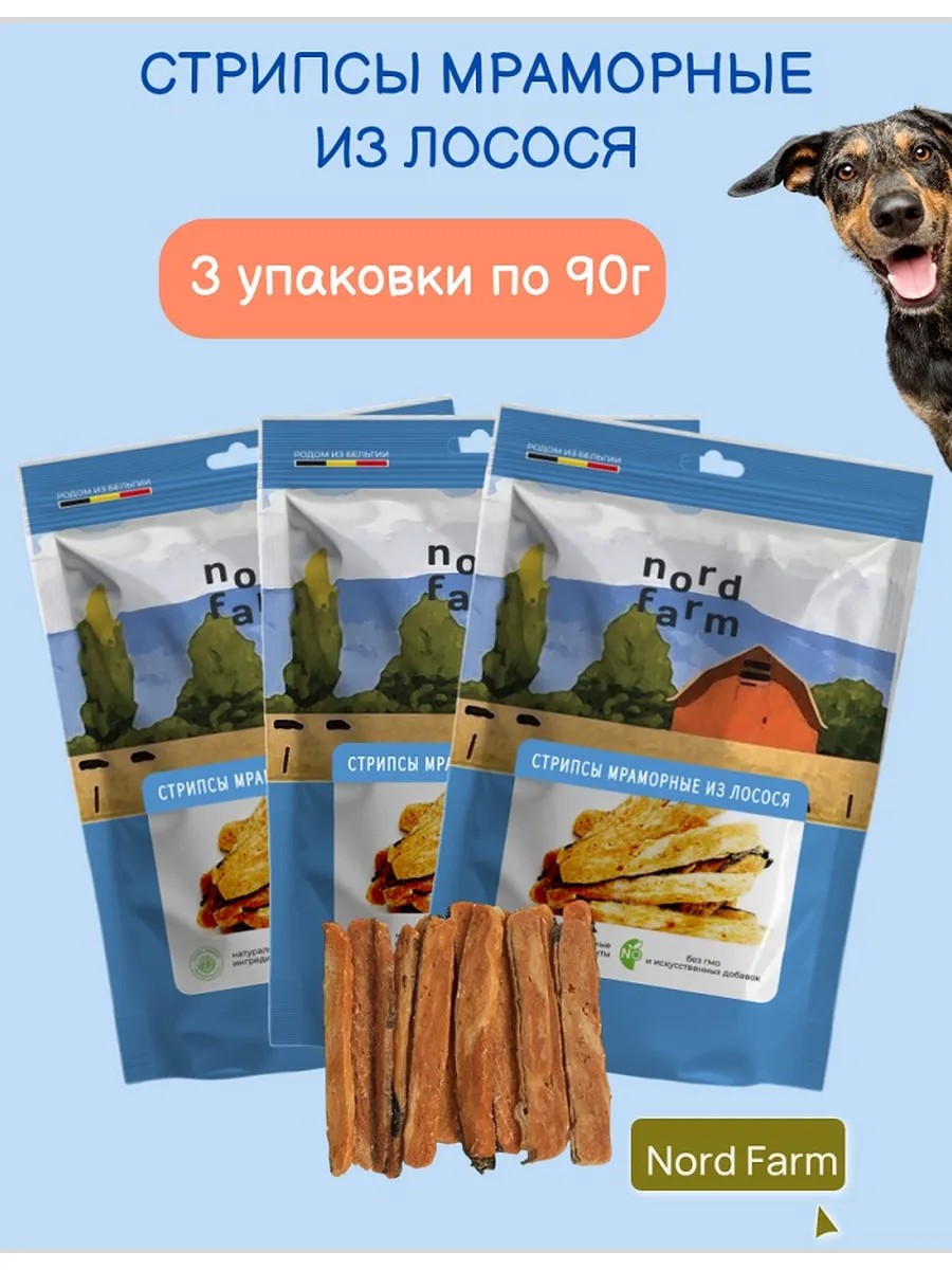 Nord Farm Лакомства для собак 3шт*90г Стрипсы мраморные из лосося