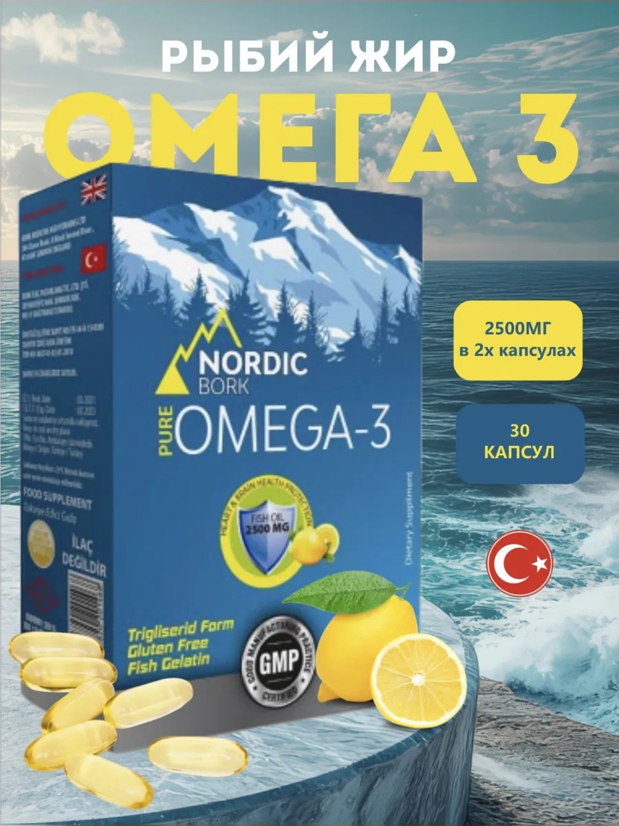 Nordic Bork Омега 3 триглицериды. Высокая дозировка DHA Рыбий жир