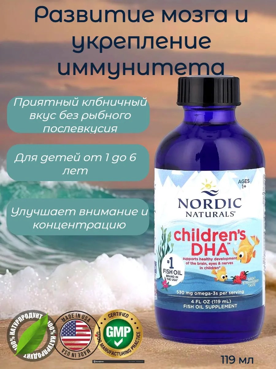 Nordic Naturals ДГК омега-3 для детей от 1 до 6 лет, 530 мг, 119 мл