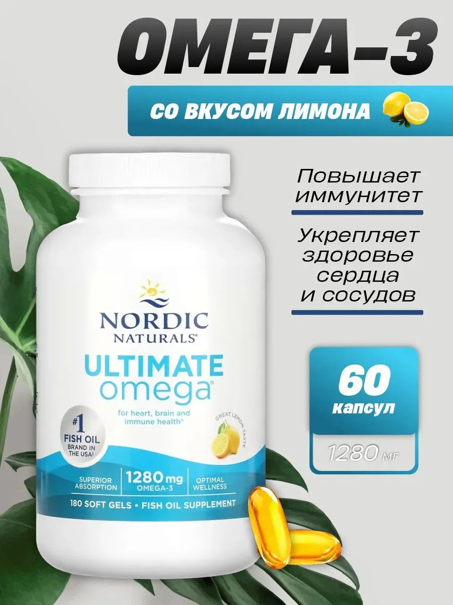 Омега-3 от Nordic Naturals Бренд № 1 на рынке рыбьего жира в США– мощный концентрат рыбьего жира, который содержит 1280 мг полезных жирных кислот в каждой капсуле. Продукт включает незаменимые жирные кислоты ЭПК и ДГК, которые необходимы для поддержания здоровья. Омега-3 подходит для людей разного возраста, включая женщин и мужчин, и способствует укреплению здоровья сердца и сосудов, а также поддерживает иммунитет.