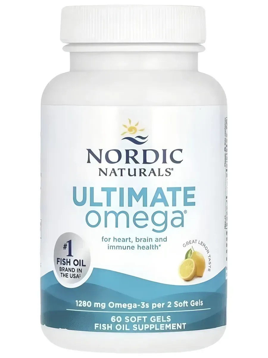 "Комплекс витаминов Омега 3 NORDIC NATURALS – это триглициридный рыбий жир в капсулах, который подходит для детей, подростков и взрослых мужчин и женщин. Жирные кислоты омега-3 — это незаменимые жиры, необходимые нашему организму для оптимального здоровья. Жирные кислоты омега-3 необходимы для поддержания хорошего здоровья, но получить достаточное их количество только с помощью диеты может быть сложно. Вот где наши добавки Омега-3 приходят! Наши добавки Омега-3 удобны и просты в использовании. Они выпускаются в капсулах, которые легко глотать, что делает их отличным вариантом для людей, которым трудно глотать таблетки, или тех, кто находится в пути. а также способствуют защите и улучшению зрения, улучшению работы головного мозга, улучшению памяти и концентрации внимания, профилактике сердечно - сосудистых заболеваний, повышению иммунитета и снижению уровня холестерина. Баночка с витаминами содержит 60 капсул в желатиновых капсулах 1280 мг каждая, содержащего мощную смесь ЭПК (650 мг) и ДГК (450 мг). Данный объем omega 3 необходим для здоровья и красоты волос, ногтей и кожи, а также помогают избавиться от выпадения волос и морщин. Полезные добавки Размер порции: 2 капсулы Количество порций в упаковке: 30 Количество в одной порции Калории 20 Общее количество жиров 2 г Общее количество Омега-3 жирных кислот° 690 мг ЭПК (эйкозапентаеновая кислота) 330 мг ДГК (докозагексаеновая кислота) 220 мг Состав: очищенный жир глубоководных рыб (из анчоусов и сардин), мягкая гелевая капсула (желатин, глицерин, вода, натуральный ароматизатор), натуральный ароматизатор, RRR-альфа-токоферол (антиоксидант), экстракт розмарина (натуральный консервант)."