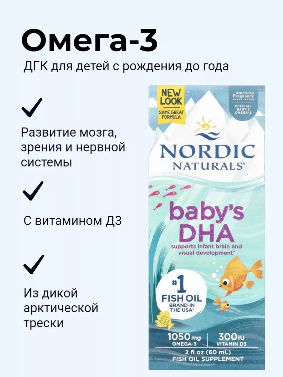 ДГК из Омега-3, полученного из дикой арктической трески, способствует развитию мозга и зрения ребенка.