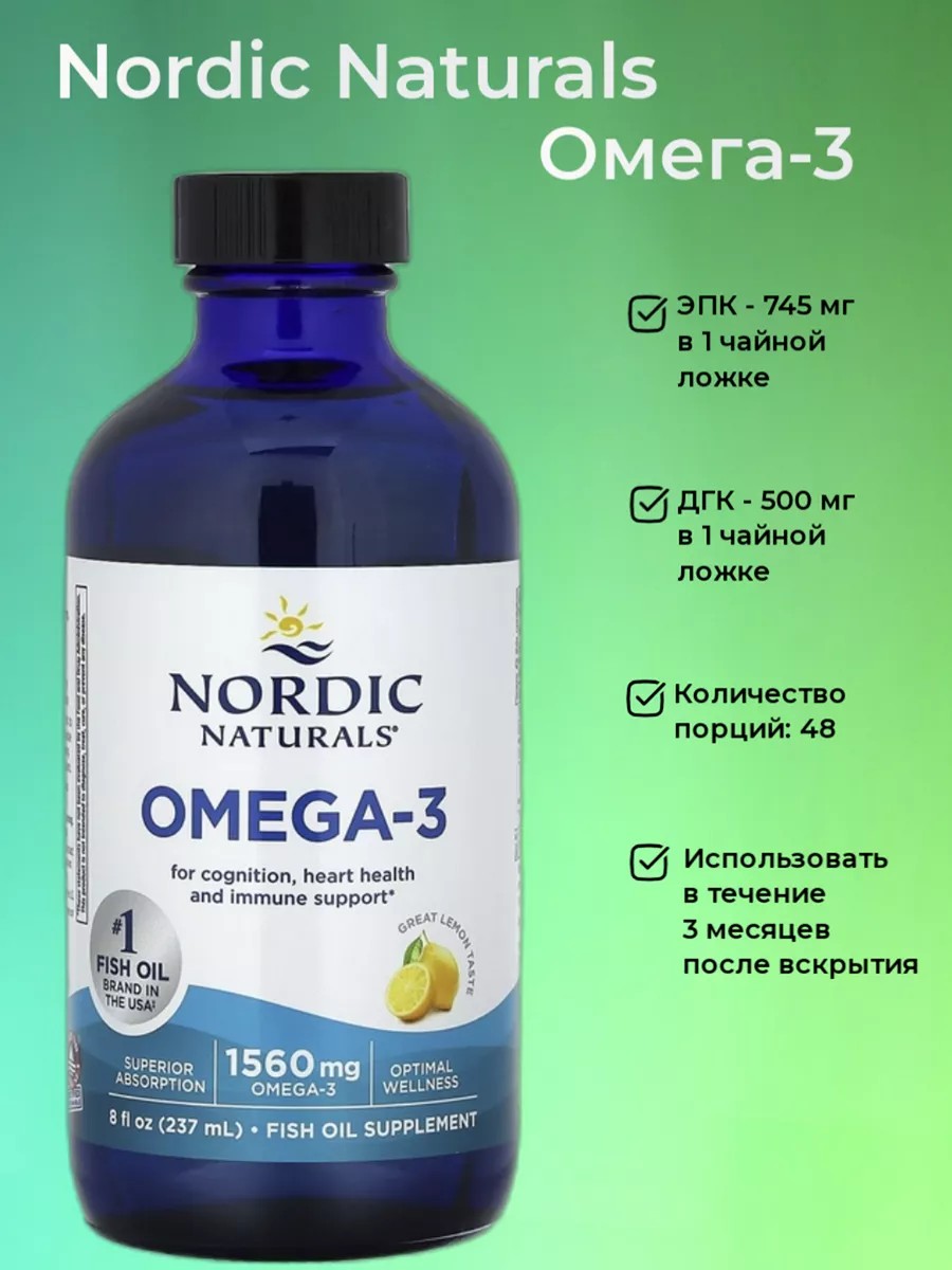 Омега-3 от Nordic Naturals содержит 1560 мг омега-3 в каждой порции, что намного превышает рекомендованную экспертами дозировку в 500 мг в день. Адекватное употребление омега-3 необходимо для поддержания хорошего питания и общего самочувствия, в том числе для здоровья сердца и мозга, а также поддержания настроения, когнитивных способностей и иммунитета.