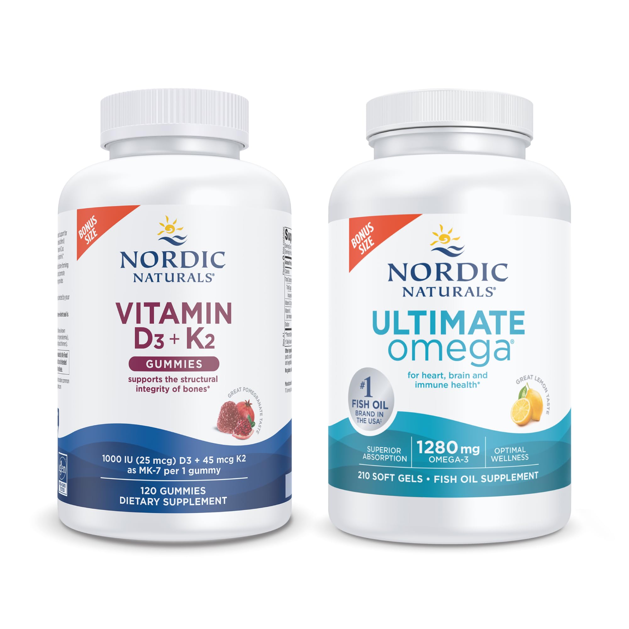 ETHICAL INNOVATION - Nordic Naturals is proud to be at the forefront of sustainable ethical practices in the natural products industry. Through science innovation, we are committed to delivering safe, effective nutrients to support foundational wellness. PURITY GUARANTEED - Everything we make is third-party tested, surpassing the strictest international standards for purity freshness. This product is non-GMO, gluten dairy free, and contains no artificial colors or flavors. DELICIOUS CONVENIENT - Our vegetarian, gelatin-free Vitamin D3 K2 Gummies for adults are a great-tasting, convenient way to get a healthy dose of these important nutrients. They provide 1000 IU vitamin D3 45 mcg vitamin K2. WHY OMEGA-3S - Research shows that the essential fatty acids EPA DHA in fish oil support heart, brain, eye immune health. Omega-3s may also help support a healthy mood. WHY VITAMIN D3 K2 - The combination of vitamin D3 and vitamin K2 provides superior support for the health and maintenance of normal bones, facilitates calcium phosphorus balance in the blood, and promotes healthy muscle function.