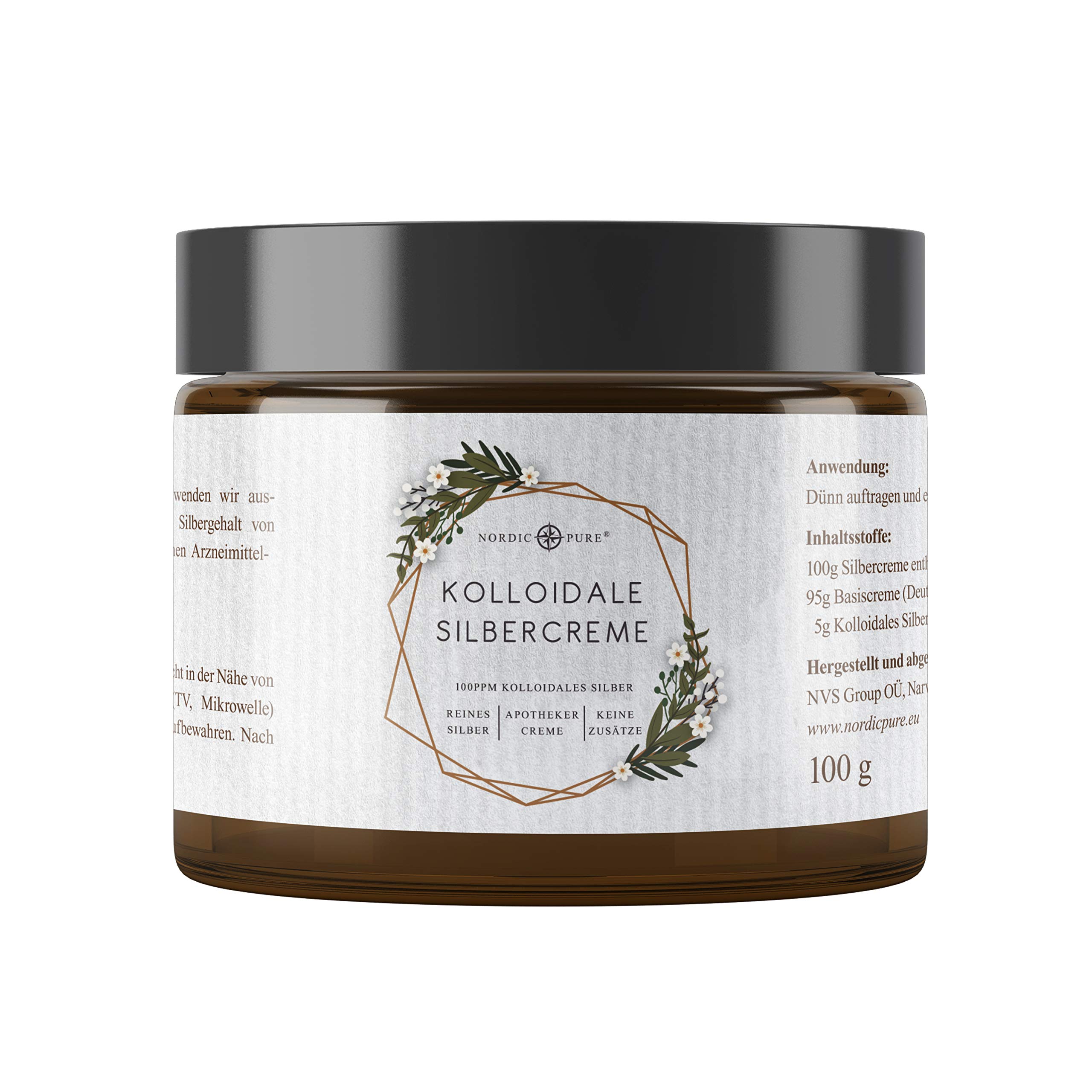 Nordic pure colloidal silver cream,100ml It is purest colloidal silver from high -quality production. We obtain our raw materials from well -known quality manufacturers from Germany. As the basis, we use a DAC base cream according to the German pharmacist standard. Our cream is filled exclusively in high-quality apoptheker brown loading and is thus protected against UV radiation. Good purpose: packs in a local workshop for people with restrictions.This supports the facility indirectly with every purchase.✓ is also frequently searched for: silver cream, colloidal silver ointment, cream silver, silver cream with colloidal silver, silver cream, cream with colloidal silver, colloidal silver cream, silver cream face, silver cream acne, silver colloid cream, silver cream repair, cream silver ions, Colloidal silver cream, cream with silver, colloidal silver cream, colloidal silver cream high dose, colloidal silver cream silver colloidal cream.✓ Simple application: It is best to apply the silver water cream to the skin for an optimal effect in the morning and in the evening or if necessary and slowly massage it.You can also use the cream as a day or night cream.✓ Made in Germany: Like all products from Nordic Pure, our silver cream is also manufactured in Germany.The raw materials come from selected quality suppliers.So you can enjoy maximum product safety and quality.In addition, our cream is filled in a pharmacist brown las traps.✓ Innovative production: The silver water we use is produced with the electrolytic Ionic pulser system.This guarantees an exact silver concentration, which is also regularly checked.The DAC basic cream (pharmacy quality GMP) is then connected to the silver water in a gentle process, so that a 5 mixture is created.✓ High-quality ingredients: For our silver cream, we use a basic cream according to the German Medicines Codex (DAC).High-quality colloidal silver water with 100 ppm is incorporated into this.The colloidal silver used is made from silver with the highest possible purity level of 99.99 and pure water, cleaned to 0.5 microsiemens.Nordic Pure Kolloidales Silber Creme,100ml Es handelt sich um reinstes kolloidales Silber aus hochwertiger Herstellung. Wir beziehen unsere Rohstoffe von namenhaften Qualitätsherstellern aus Deutschland. Als Grundlage nutzen wir eine DAC Basiscreme nach deutschem Apotheker-Standard. Unsere Creme wird ausschließlich in hochwertigen Apoptheker Braunglastiegeln abgefüllt und ist so vor UV-Strahlung geschützt. GUTER ZWECK: Verpackt wird in einer lokalen Werkstatt für Menschen mit Einschränkungen. Dadurch wird die Einrichtung mit jedem Kauf indirekt unterstützt.✓ WIRD AUCH HÄUFIG GESUCHT UNTER: silbercreme , kolloidales silber salbe , creme silber , silbercreme mit kolloidalem silber , silber creme , creme mit kolloidalem silber , kolloidale silbercreme , silber creme gesicht , silbercreme akne , silberkolloid creme , silber creme repair , creme silberionen , kolloidales-silber creme , creme mit silber , kolloidales silbercreme , kolloidales silber creme hochdosiert , kolloidales silber creme silber kolloidales creme. ✓ EINFACHE ANWENDUNG: Tragen Sie die Silberwasser-Creme für einen optimalen Effekt am besten morgens und abends oder auch bei Bedarf auf die Haut auf und massieren diese langsam ein. Sie können die Creme zudem auch als Tages- oder Nachtcreme verwenden. ✓ HERGESTELLT IN DEUTSCHLAND: Wie alle Produkte von Nordic Pure, wird auch unsere Silbercreme in Deutschland hergestellt. Die Rohstoffe stammen dabei von ausgewählten Qualitäts-Lieferanten. So können Sie sich einer maximalen Produktsicherheit und Qualität erfreuen. Zudem wird unsere Creme in einem Apotheker Braunglas-Tiegel abgefüllt. ✓ INNOVATIVE HERSTELLUNG: Das von uns verwendete Silberwasser wird mit dem elektrolytischem Ionic-Pulser System hergestellt. Dies garantiert eine exakte Silberkonzentration, welche zusätzlich regelmäßig laborgeprüft wird. Die DAC Basiscreme (Apotheken-Qualität GMP) wird dann in einem schonenden Prozess mit dem Silberwasser verbunden, so dass eine 5 -ige Mischung entsteht. ✓ HOCHWERTIGE INHALTSSTOFFE: Für unsere Silbercreme nutzen wir als Grundlage eine Basiscreme nach dem Deutschen Arzneimittel-Codex (DAC). In diese wird hochwertiges kolloidales Silber-Wasser mit 100 ppm eingearbeitet. Das verwendete kolloidale Silber wird aus Silber mit der höchstmöglichen Reinheitsstufe von 99,99 und Reinst-Wasser, gereinigt auf 0,5 microsiemens, hergestellt.Nordic Pure Kolloidales Silber Creme • 100g Natürliche Silbercreme mit Silberwasser 100 ppm Premium Qualität aus Deutschland