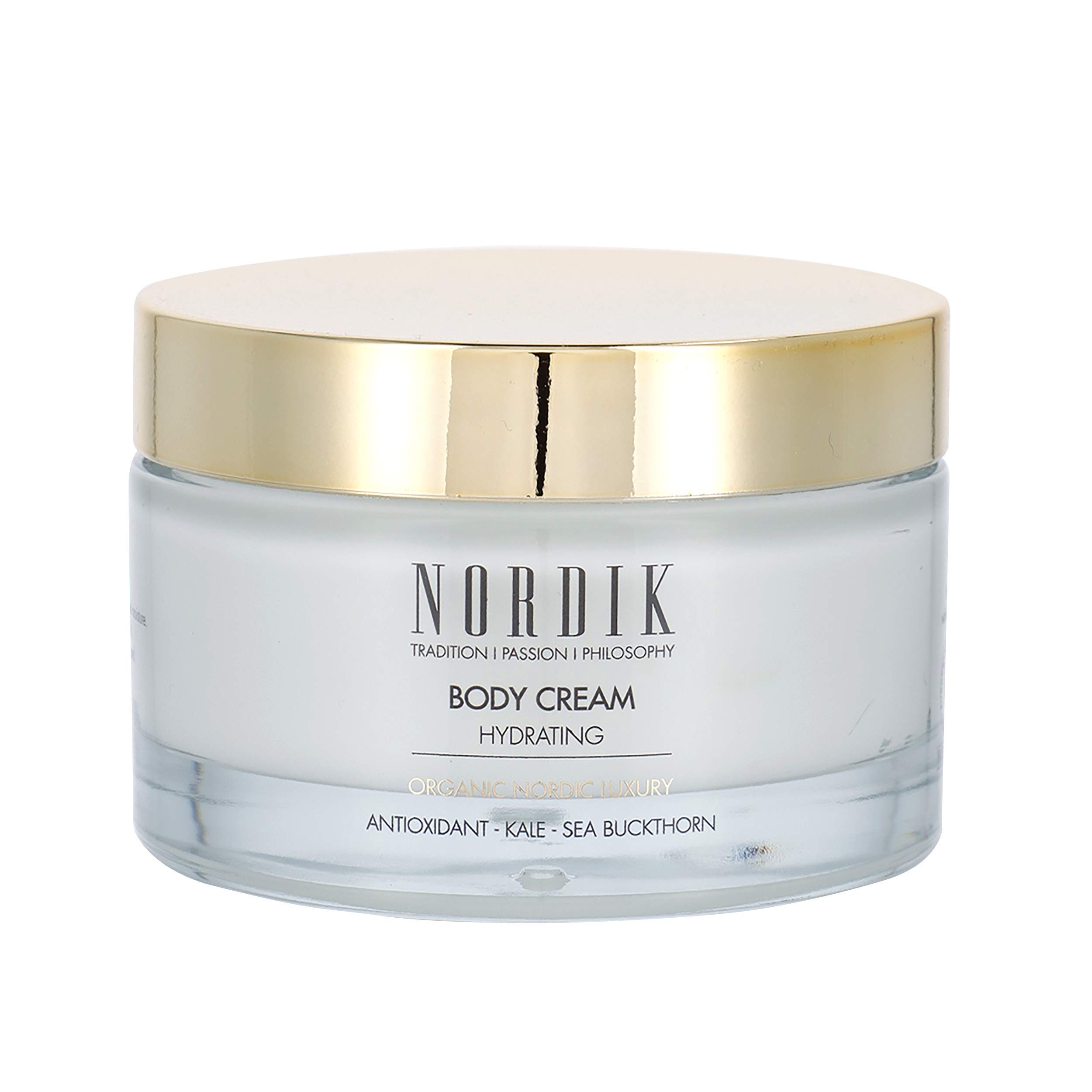 NORDIK Body Cream is a highly effective moisturizer for daily use. The delicate balance of ingredients hydrates your skin by locking in its natural moisture. This easily absorbed cream leaves your skin feeling hydrated, healthy, and soft. Enriched with a unique combination of olive oil, arctic berries, organic kale, and organic sea buckthorn. Suitable for all skin types and tones. INGREDIENTS Aqua, Olea Europaea Fruit Oil, Butyrospermum Parkii Butter, Glycerin, Cetearyl Alcohol, Hydrogenated Olive Oil Esters, Lauryl Glyceryl Stearate Citrate, Caprylic Capric Triglyceride, Ethylhexyl Stearate, Glyceryl Stearate, Carbonate Triglyceride, Hippophae Rhamnoides Fruit Extract, Rubus Arcticus Fruit Extract, Rubus Chamaemorus Fruit Extract, Vaccinium Vitis-Idaea Fruit Extract, Brassica Oleracea Leaf Extract, Phenoxyethanol, Ethylhexylglycerin, Potassium Sorbate, Sodium Benzoate, Soja Dium Hydroxide, Lactic Acid, Citrus Limon Peel Oil, Limonene, Citral.Certified vegan. Organic. Natural. Moisture-wicking. Body cream.NORDIK Crème hydratante pour le corpsDESCRIPTION DU PRODUIT DESCRIPTION DU PRODUIT NORDIK Body Cream est un hydratant très efficace pour un usage quotidien. L'équilibre délicat des ingrédients hydrate votre peau en retenant l'hydratation naturelle de votre peau. Cette crème facilement absorbante rend votre peau hydratée, saine et douce. Enrichi d'une combinaison unique d'huile d'olive, de baies arctiques, de chou frisé biologique et d'argousier biologique. Convient à tous les types de peau et tons de peau. INGRÉDIENTS Aqua, Olea Europaea Fruit Oil, Butyrospermum Parkii Beurre, Glycérine, Alcool Cetearyl, Esters d'Huile d'Olive Hydrogénée Lauryl, Glycéryl Stearate Citrate, Caprylic Capric Triglycéride, Stéarate d'éthylhexyle, Stéarate de glycéryle, Triglycéride ocophery l Acétate de carbone, extrait de fruit Hippophae Rhamnoides, extrait de fruit Rubus Arcticus, Rubus Chamaemorus Fruit Extrait, Vaccinium Vitis-Idaea Fruit Extract, Brassica Oleracea Leaf Extrait, Phénoxyéthanol, Ethylhexylglycérine, Sorbate de potassium, sodium Benzoate, Soja Dium Hydroxyde, Acide Lactique, Citrus Limon Peel Oil, Limonène, Citral.Certifié végétalien. Biologique. Naturelle. Courroie d'humidité. Crème pour le corps.