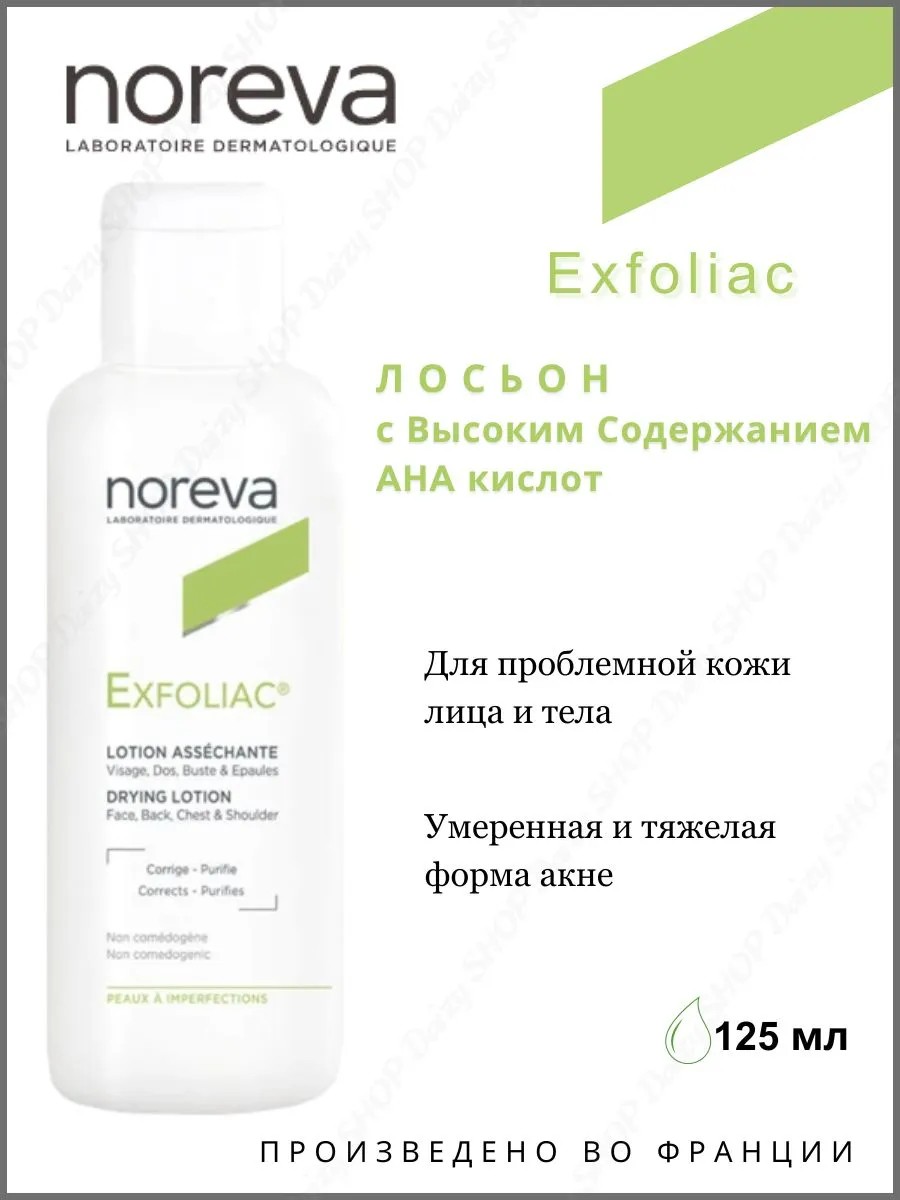 Лосьон Норева Эксфолиак для жирной, проблемной кожи. эффективно очищает и тонизирует кожу с тенденцией к акне . Средство предотвращает появление прыщей на лице, области декольте, груди, шее, спине. С первого месяца применения Noreva Exfoliac Lotion кожа светится здоровьем и свежестью.