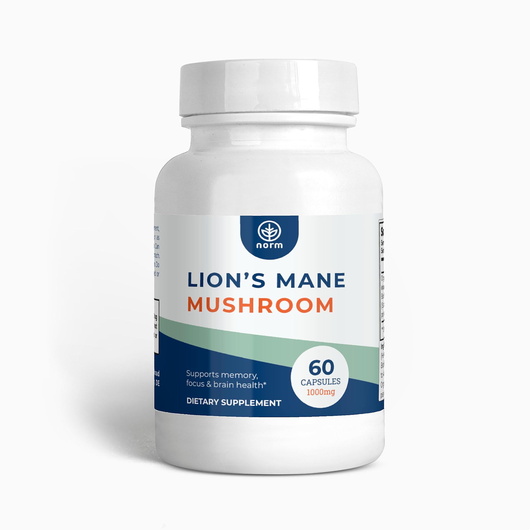 norm Lion's Mane Mushroom Capsules – 1000mg Organic Hericium erinaceus with Fruiting Body Mycelium – Focus, Memory Mood Support – Cognitive Wellness Nootropic – 60 Vegan Capsules – Made in USA