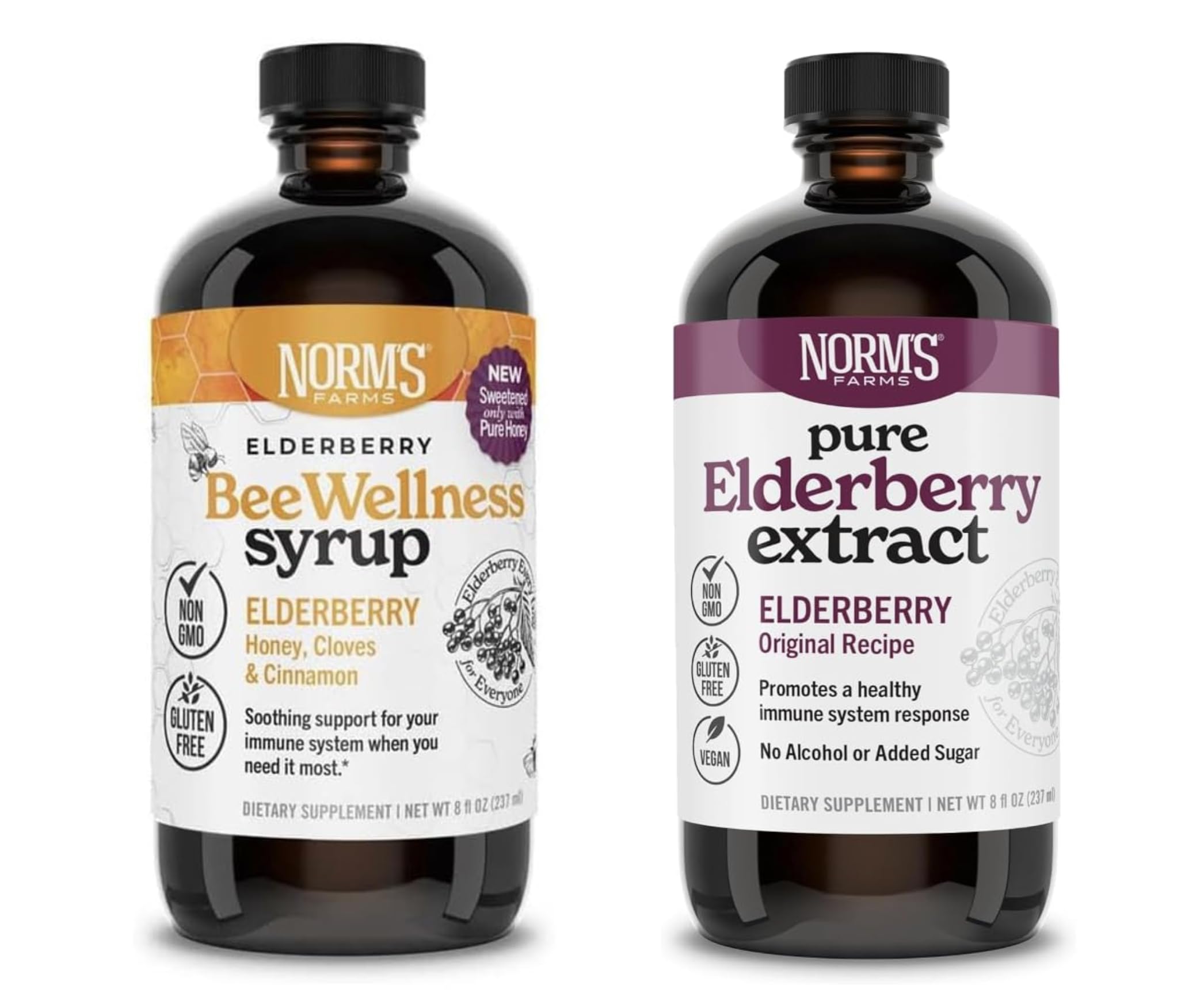 Elderberry Wellness Syrup and Supplements are formulated to bring natural and soothing relief for seasonal distress. Our Wellness Syrup contains equal amounts of our Elderberry Extract and soothing, delicious honey, perfectly spiced with analgesic cloves to coat your sore throat. Cinnamon adds an extra kick of relief. Our Extract formula is very simple…we use a gentle water process to extract the elderberry and remove the seeds before we bottle it. It tastes great, like a dry red wine: it's not sweet, and it's not bitter. You won't find any added alcohol, sugars, artificial sweeteners or ingredients in our products. Elderberry contains higher levels of antioxidants than blueberry, sweet cherry, tart cherry, pomegranate and cranberry juices.SUSTAINABLE 2-PACK IN GLASS BOTTLES: Includes one 8-oz American Elderberry Extract and one 8-oz Elderberry Wellness Syrup. Bottled in reusable, recyclable glass containers to preserve freshness and support sustainability. 3rd-PARTY TESTED SAFE FOR CHILDREN: Both formulas are 3rd-party tested for purity and are safe for both adults and children. Suggested consumption: ½ teaspoon per day for children ages 1-3, 1 teaspoon for adults and children above age 4. ONLY MADE IN USA: Our elderberries are only made in the USA in the farms of the midwest. We are a small and local company with full control of the elderberry production process to ensure you get pure homegrown locally farmed ingredients. HIGH ABSORPTION GREAT TASTE: Enjoy a sweet, spiced flavor in combination with cinnamon and cloves that everyone will enjoy. Both bottles are designed for adults and kids, with a 98 absorption rate when taken orally for quick and effective results. CLEAN, POTENT INGREDIENTS: Crafted with pure North American elderberries, both formulas are free from alcohol, artificial ingredients, unnecessary fillers, and glycerin-free. Made with pure non-GMO, gluten-free plant-based homegrown sources to support your body's defenses naturally. DELICIOUS EFFECTIVE: Enjoy the lightly sweet, spiced taste of the elder berry syrup sweetened with only pure honey, cinnamon cloves or rich, fruity flavor of our unsweetened elderberry extract. Both offer a 98 absorption rate for maximum benefit. DUAL IMMUNE SUPPORT FORMULA: Support your wellness naturally with this 2-pack combo of American Elderberry Extract and BeeWellness elderberry syrup designed to strengthen immunity, soothe discomfort, and deliver antioxidant power for the whole family.