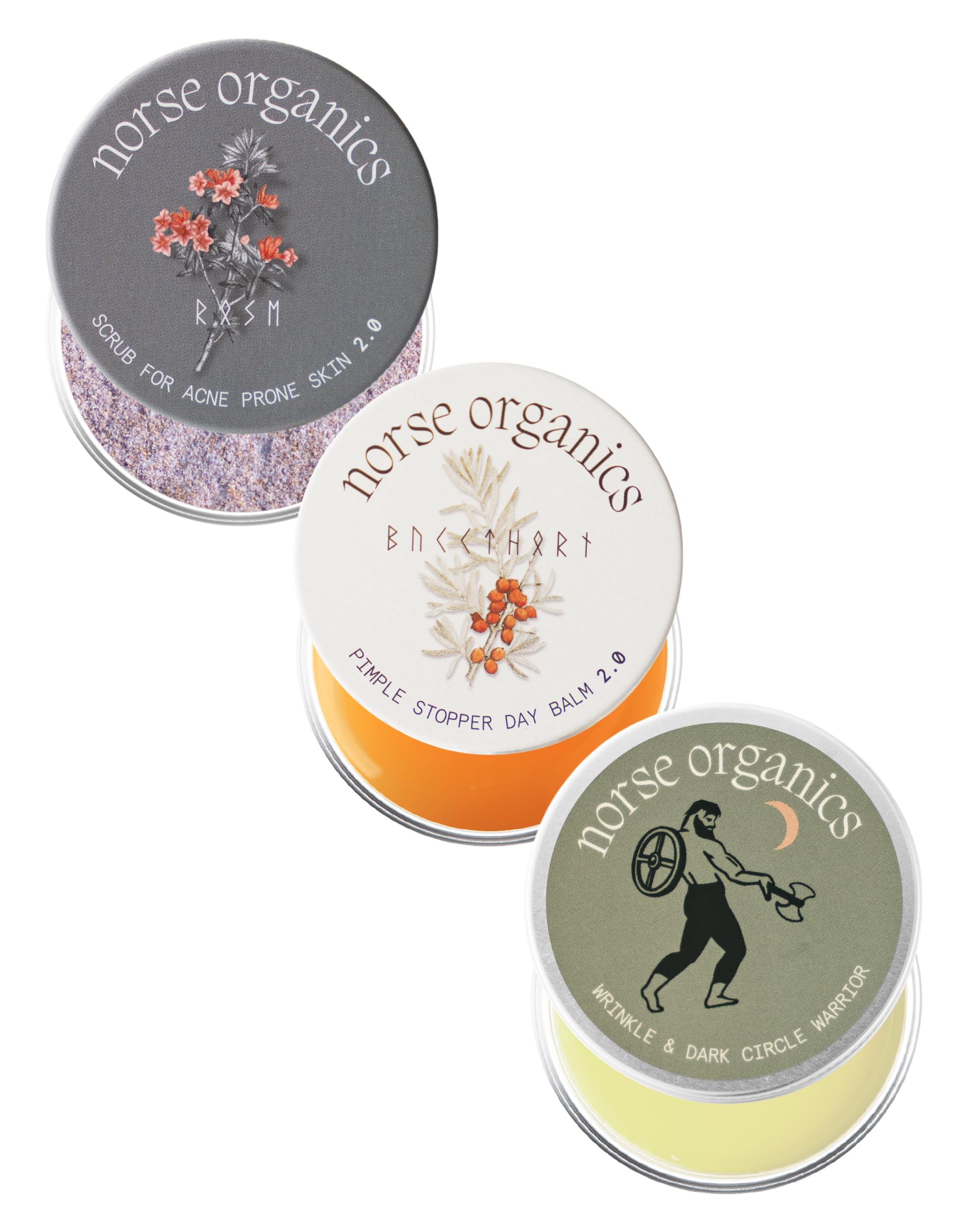 Apply 6 in 1 Daily Glow morning for protection and radiance, use powder scrub 2 to 3 times weekly, apply Wrinkle Warrior nightly before bed, this easy routine for skin over 25 is backed by complete satisfaction guarantee and trusted by 50,000 plus customers. NO WATER, NO FILLERS, ZERO HORMONE DISRUPTORS. Unlike mainstream skincare that is 70 to 90 percent water and silicones, every product contains only cold pressed oils, wild harvested herbs, and Arctic beeswax with zero parabens or estrogenic chemicals, allowing nutrients to penetrate deeply to support collagen production and skin renewal. POMEGRANATE CLINICALLY SHOWN TO SUPPORT YOUTHFUL SKIN. In a clinical study of 186 people, Pomegranate significantly addressed wrinkles and works synergistically with Arnica, combined with Sea Buckthorn containing 190 bioactive compounds, Rosehip, Thistle, and other potent Arctic botanicals for comprehensive support against visible signs of aging. WILD ARNICA PROVEN MOST EFFECTIVE IN 380 COMPOUND STUDY. Clinical research testing 380 of the most powerful plants on earth identified Wild Arnica as most effective for addressing wrinkles, with 92 percent of participants experiencing reduced wrinkle depth within 4 weeks, wild harvested from Norwegian mountainsides for maximum antioxidant potential. COMPLETE 3 STEP SYSTEM FOR YOUTHFUL RADIANT SKIN. This ritual includes Wrinkle Dark Circle Warrior, 6 in 1 Daily Glow Moisturize balm, and Premium Face Scrub powder, all formulated to address lines and wrinkles, support collagen and elastin production, reduce dark circles and puffiness, deliver instant natural glow, and even skin tone.