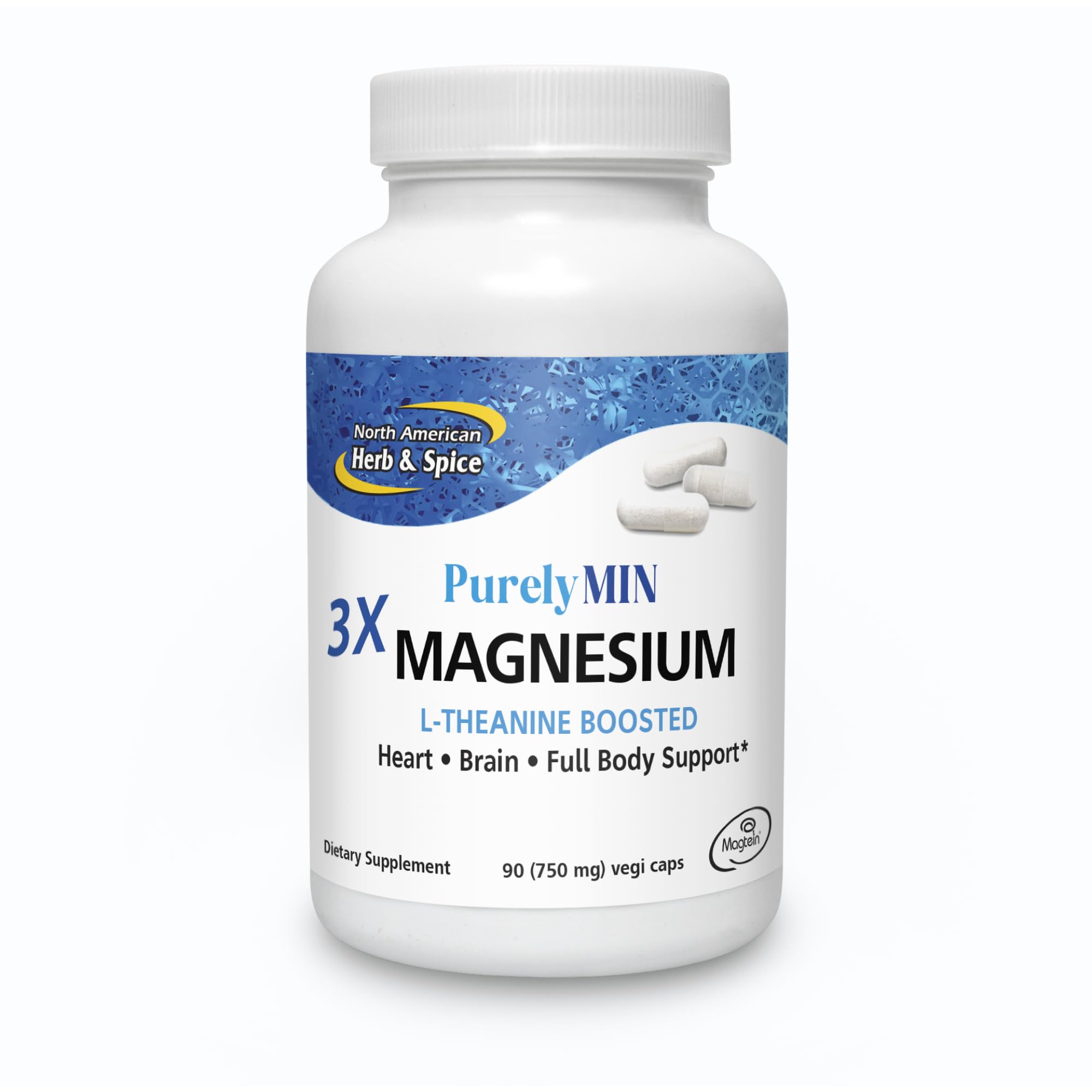 NORTH AMERICAN HERB & SPICE PurelyMin - 90 Vegi Caps - Highly Absorbable Magnesium Complex + L-Theanine - 30 Servings