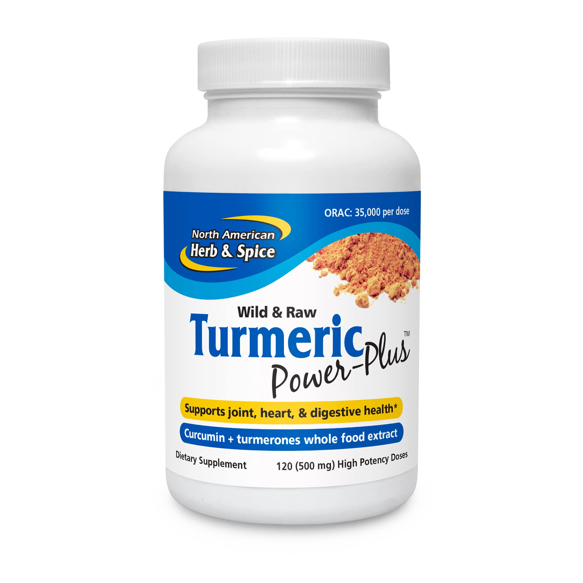 NORTH AMERICAN HERB & SPICE Turmeric Power-Plus - 120 Count - Curcumin & Turmerones Whole Food Extract - Joint Heart & Digestive Health Support - Antioxidant - Non-GMO - 60 Servings 120 Count (Pack of 1)