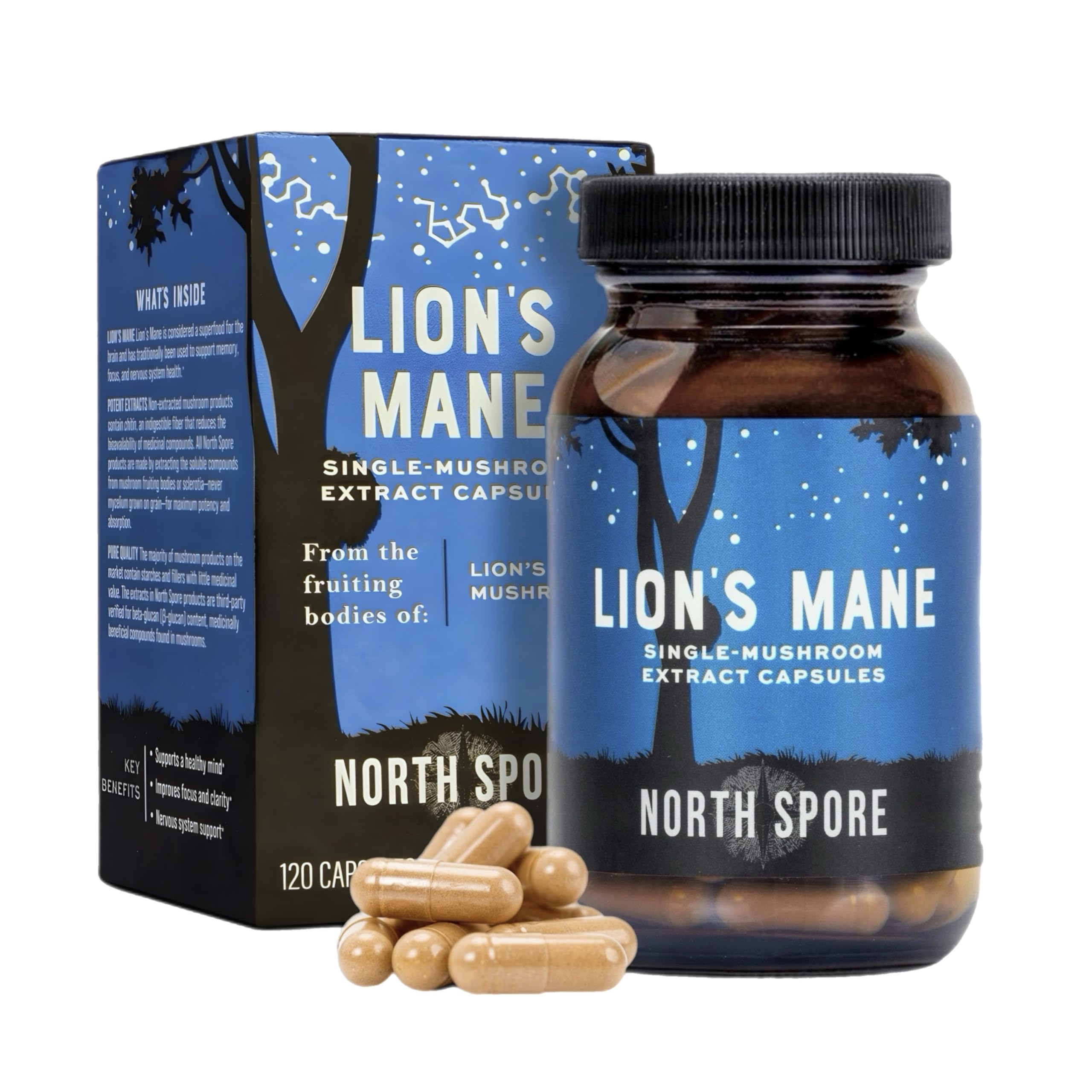 Synergistic Mind-Body Benefits: More than a mind supplement, the mushrooms also encourage nervous system balance, daily resilience, proper immune response, smooth cellular functions, and overall vitality. Experience the joy that comes with clarity, focus, and whole-system wellness. Organic, Pure, Expert Checked: Crafted from certified organic mushrooms grown in the USA under strict industry standards, every supplement is rigorously checked by professionals for purity, potency, and absence of heavy metals and othe impurities. Always non-GMO, vegan, and gluten-free. Powerful 100 Fruiting Bodies: Some mushroom products use inferior mycelium grown on grains however, North Spore's discriminating team uses only certified organic whole fruiting bodies and sclerotia, the most nutrient-dense mushroom elements. An effective natural boost free of fillers, additives, and other unwanted ingredients, for uncompromising purity and efficacy. Concentrated Extracts for Full Potency: Each serving contains 1000mg of highly bioavailable Lion's Mane (1:1) mushroom extract. These extracts are standardized to provide more beneficial compounds than regular mushroom powder for optimal cognitive effects.