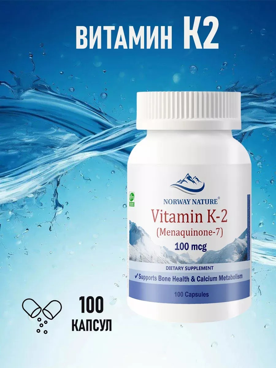 Norway Nature, Vitamin K-2, 100 mcg is a unique natural vitamin K2 MK-7 (menaquinone-7) 100 mcg.