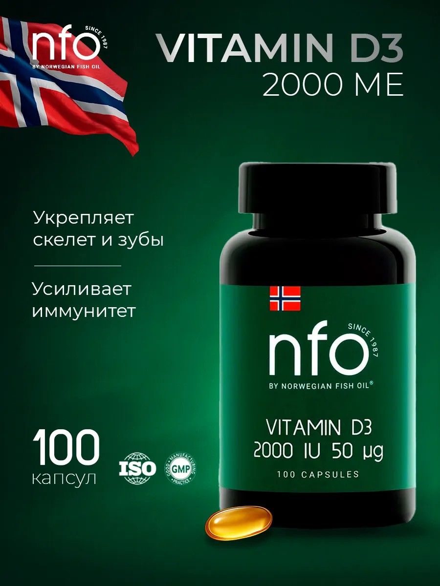 Norwegian Fish Oil NFO Витамин Д3 2000 МЕ для иммунитета, 100 капсул