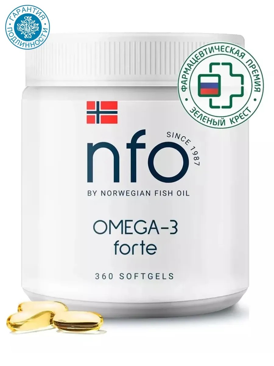 Omega-3 forte is a natural, highly purified fish oil in odorless, tasteless gelatin capsules with a high concentration of omega-3 in one capsule to improve the health of adults and children aged 3 years and older. Wild fish oil from the Norwegian Sea is truly a priceless treasure of Norway and is considered one of the best in the world. The complex contains very important components - polyunsaturated fatty acids - eicosapentaenoic (EPA) and docosahexaenoic (DHA) in a high concentration per capsule. These amino acids are the building blocks of cell membranes of all organs and systems of the human body, but the body does not synthesize them itself, but only comes from outside. Reduces the risk of cardiovascular diseases, helps normalize blood pressure; improves memory, attention, thinking functions; helps reduce the level of "bad" cholesterol in the blood (LDL); participates in the formation of the nervous system and visual organ in children; activates the immune system, reduces the intensity of inflammatory processes; Improves the reproductive system of men and women; normalizes metabolic processes in overweight individuals; affects the appearance of the skin, promotes skin hydration, smooths out wrinkles; helps maintain tone, energy, youth, and slows down the aging process. It is an essential component of an athlete's diet for weight management, improved metabolism, and rapid recovery after high-intensity training. Not a medicine.
