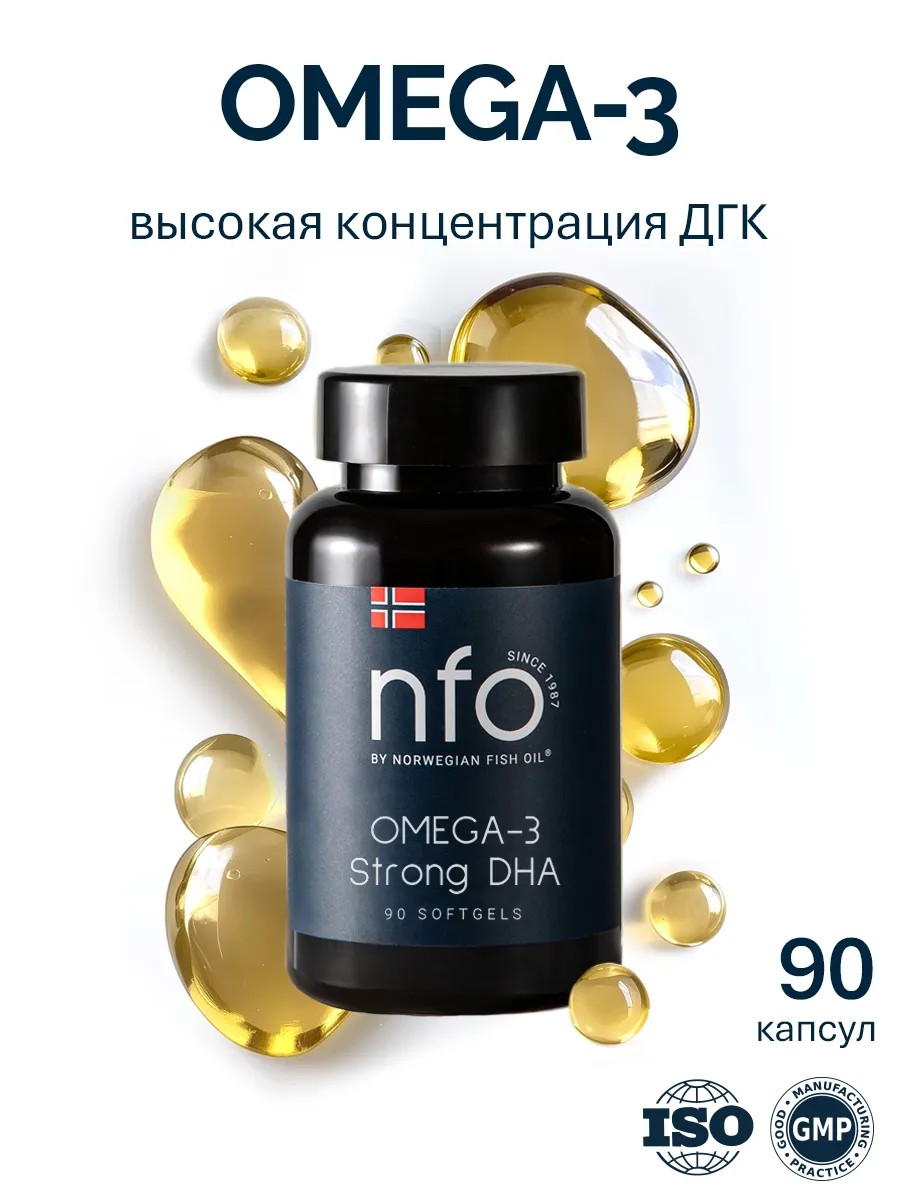 NFO Омега 3 Стронг ДГК - натуральный высоочищенный рыбий жир в желатиновых капсулах с повышенным содержанием ДГК.