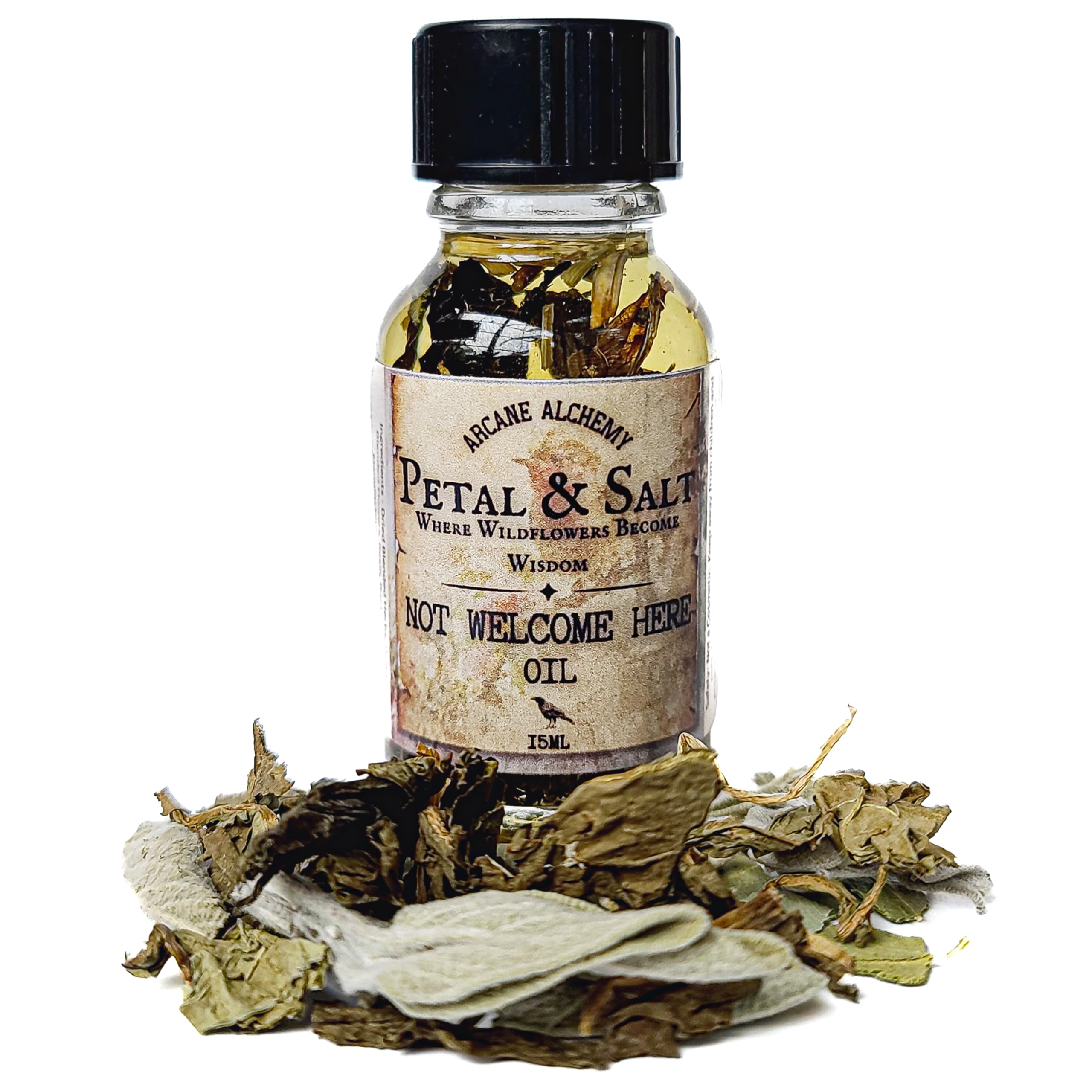 Not Welcome Here Oil by Petal Salt is a powerful banishing and protection ritual oil crafted to stop negative energy, toxic people, spiritual interference, jealousy, and unwanted influences before they ever reach your space. This blend is intentionally formulated to help you set clear energetic boundaries, remove lingering heaviness, and create a strong "Do Not Enter" shield around your home, aura, or personal environment. Made with banishing herbs, protective roots, warding botanicals, and charged essential oils, this oil is perfect for keeping out bad vibes, harmful intentions, psychic attachments, and draining people. Use it whenever you need to reclaim your energy, stand in your power, and keep negativity OUT. How to Use Anoint doorframes, thresholds, and entryways Dress black or red banishing candles Add to spell jars, charms, or protection amulets Apply around windows, mirrors, or room corners Use during cleansing rituals, cord-cutting, or boundary work Wear (externally) on wrists or ankles for personal protectionPerfect for anyone feeling drained, watched, or spiritually unsafe, protection during major life transitions, creating a safe, grounded home environment. Perfect for empaths sensitives who absorb others' emotions, homes dealing with conflict, spiritual discomfort, or heavy vibes, ending cycles with toxic people. Protects your home, aura personal space, repels negativity, gossip, jealousy emotional residue, reinforces personal boundaries sovereignty. Blocks toxic people unwanted energy, banishing of ill intentions, envy spiritual intrusion, creates a powerful "stay away" energetic barrier.