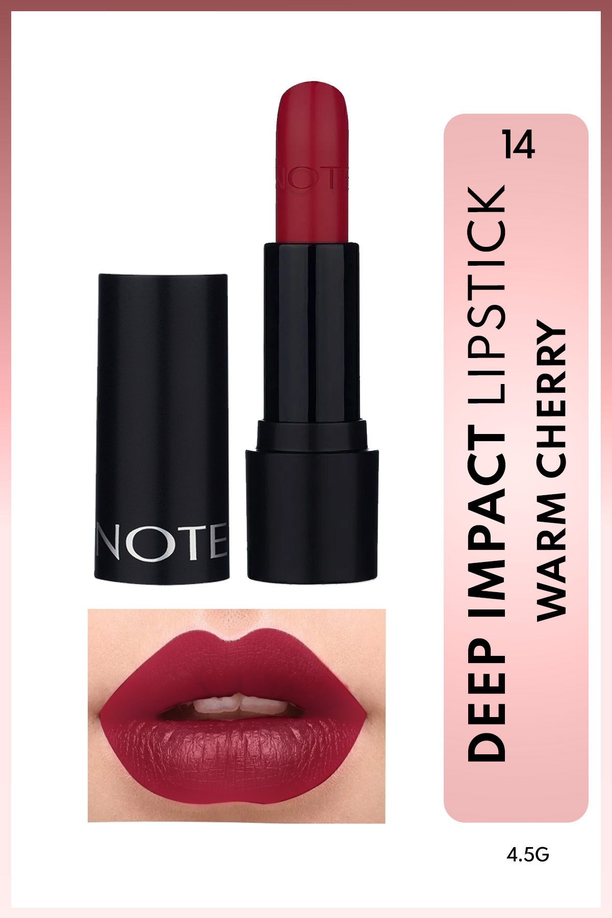 Note Cosmetics Deep Impact Lipstick Creamy Texture Semi-Glossy Lipstick 14 Warm Cherry - Red