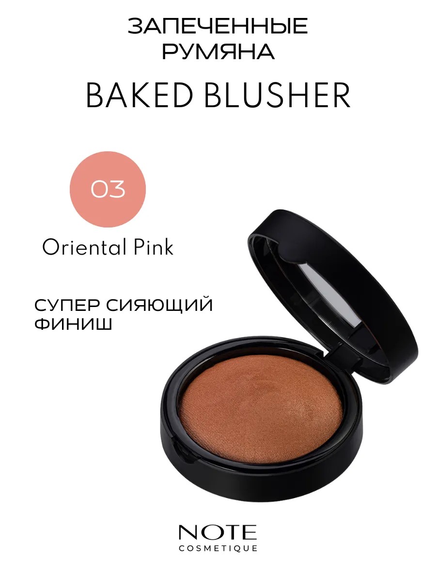Запеченные румяна-хайлайтер Note Banked Blusher. Фантастически прекрасные запеченные румяна от NOTE! Фавориты, обладающие несомненными достоинствами. Легкая, словно шёлковая текстура равномерно ложится на кожу, румяна устойчивы и обладают высоко пигментированным составом за счет технологии запекания. Палитра элегантных оттенков придаст коже сияние и отдохнувший свежий вид, как после отпуска. Словно морское солнце на закате румяна нежно целуют скулы, оставляя манящий, светящийся след.Интенсивность нанесения можно регулировать от мягкого до самого насыщенного в зависимости от вашего желания и способа нанесения. Сияние можно усилить, создавая более выразительный образ с четкими контурами, нанося румяна влажным способом.Роскошная текстура обогащена маслом макадамии. Благородное косметическое масло увлажняет, тонизирует и улучшает структуру кожи, а также служит естественным солнцезащитным фильтром, предохраняя кожу от вредного воздействия УФ-лучей.Способ применения: наберите небольшое количество румян на пушистую крупную кисть и нанесите на зоны, которым хотите подарить сияние. Румяна можно использовать также, как хайлайтер или бронзатор в зависимости от выбранного оттенка. Для эффекта влажного макияжа предварительно слегка смочите кисть.