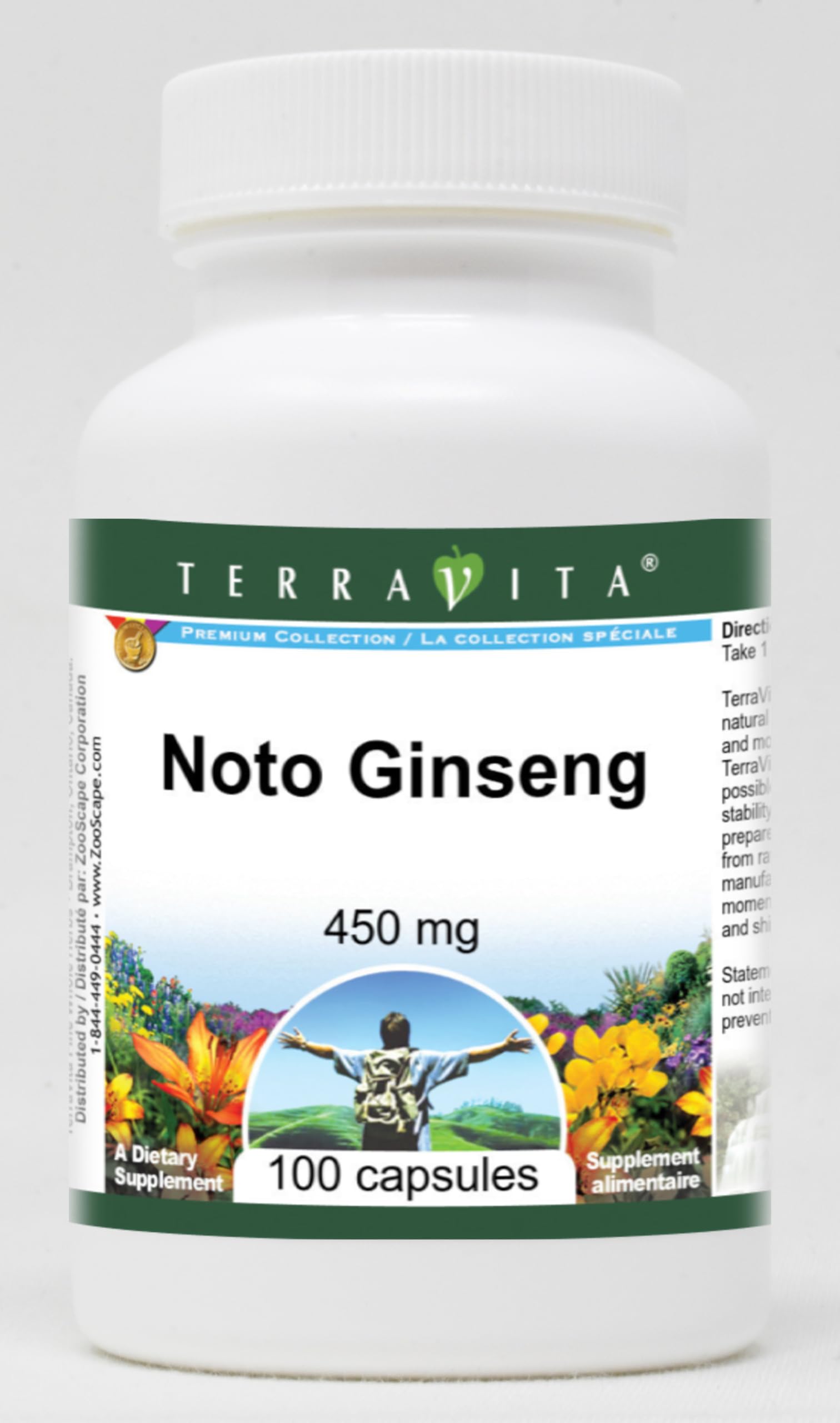 Noto Ginseng - 450 mg (100 capsules, ZIN: 520237) Packaged in the United States in a GMP certified facility (Good Manufacturing Practice). No fillers. Manufacturer: TerraVita Size: 100 capsules Easy-to-swallow Capsules in a sealed bottle. Ingredients: Gelatin, Water, Noto Ginseng - 450 mg