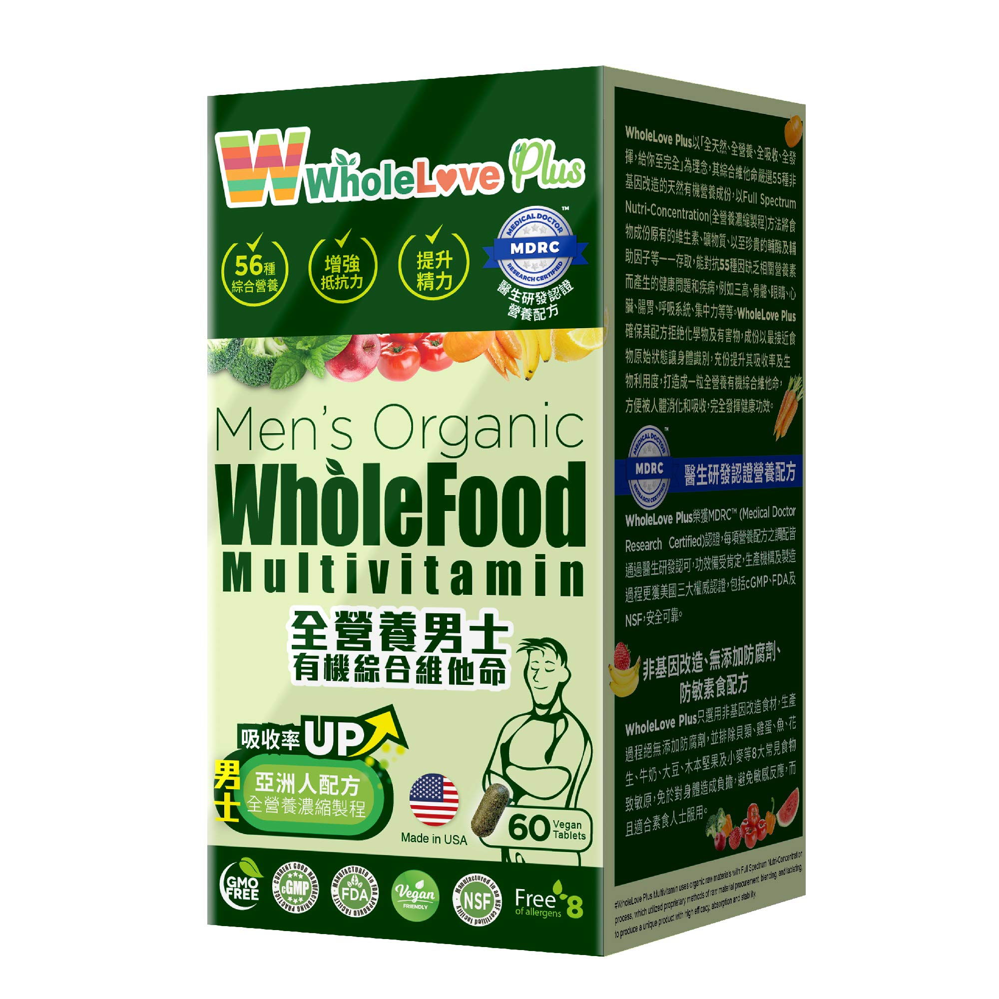 NOTO WholeLove Plus Men's Organic WholeFood Multivitamin Health Supplements for Immune Support Vitamin Vegan Friendly 60 Tables