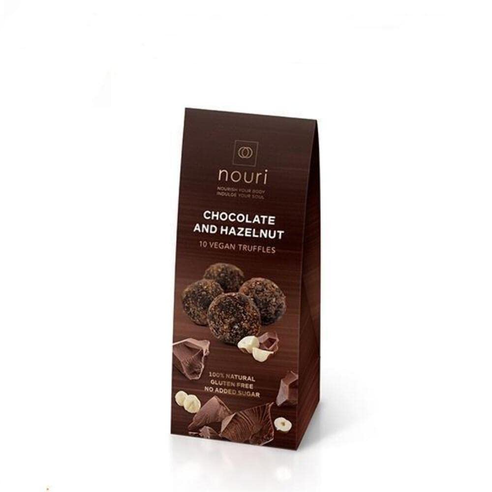 Nouri's Chocolate Hazelnut Truffles are truly an amazing vegan treat. Combining health and indulgence, they are packed with flavor and use all-natural ingredients. This rich, nutty variety is made with whole hazelnuts and almonds, with a blend of cocoa added for the chocolate lovers among us. A good source of protein and with no added sugar, these crunchy and chewy bites are also gluten-free and soy-free. Individually wrapped in the box, these vegan truffles make a great snack on the go, as well as a delicious after-dinner treat! INGREDIENTS Nouri Chocolate Hazelnut Truffles 100g