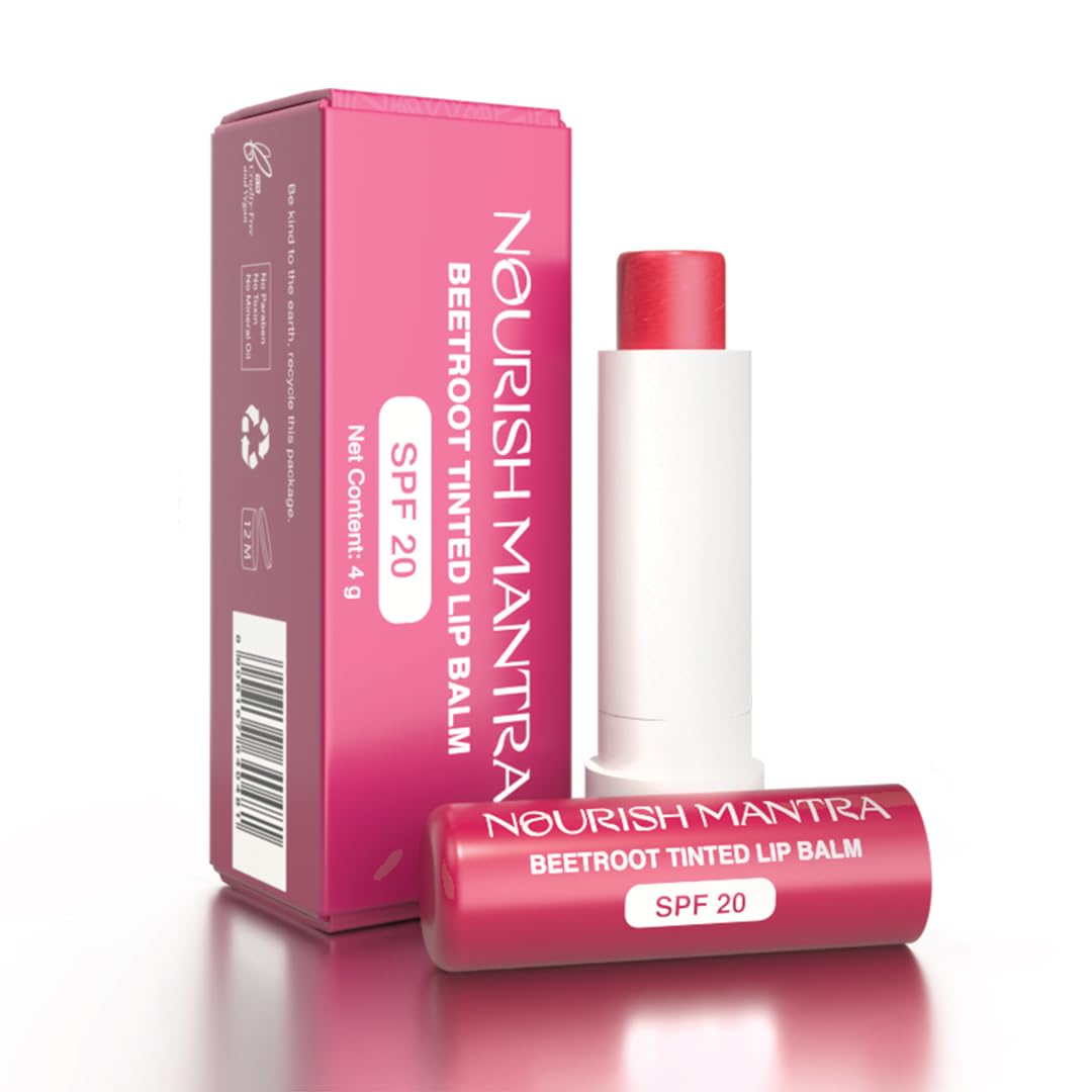 NOURISH MANTRA Beetroot Tinted Lip Balm with SPF 20 | Lip Balm for Chapped & Dry Lips | Enriched with Almond Oil Shea Butter & Beetroot | Suits All Skin Types | For Men & Women | 4gm