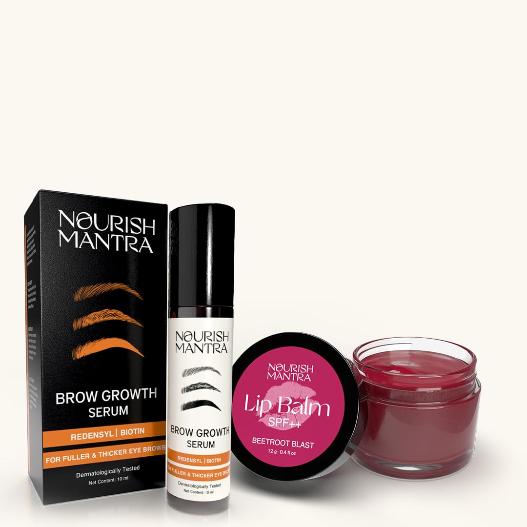 Nourish Mantra Eyebrow Growth Serum and Beetroot Blast Lip Balm