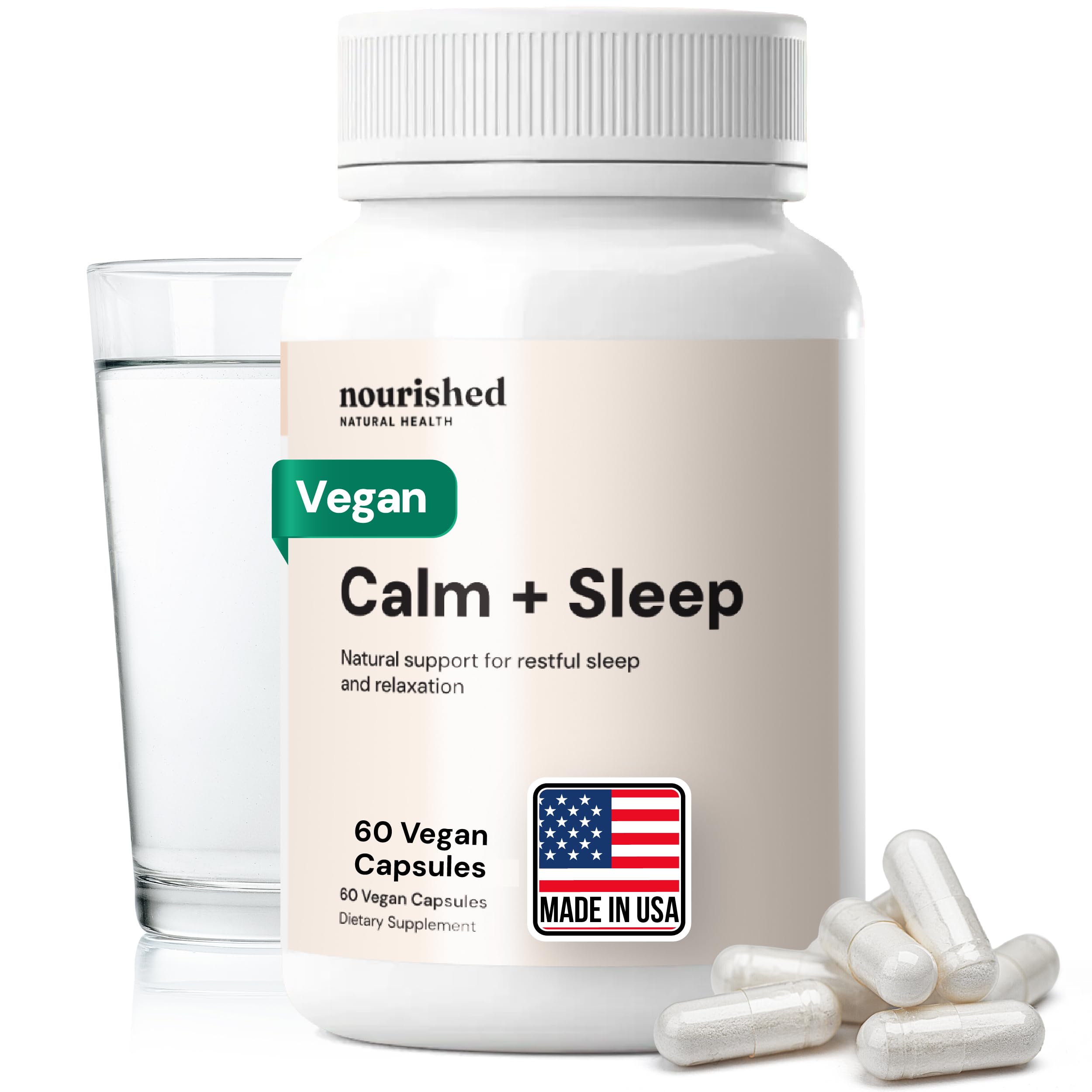 QUALITY YOU CAN TRUST – Produced in the USA in our GMP-certified facility, our Calm Sleep formula is third-party verified for purity and potency. Made with no soy, dairy, or GMOs, this vegan-friendly supplement offers quality and safety you can count on. BACKED BY SCIENCE – At Nourished Natural, we believe in using ingredients supported by extensive research. Our capsules feature botanicals and minerals known to naturally promote relaxation. Each component has been carefully selected based on scientific studies to help encourage an overall sense of wellbeing. ALL-NATURAL FORMULA – Formulated with a variety of calming herbs, our Calm Sleep Capsules combine ashwagandha, chamomile, passionflower, and more. Each ingredient is chosen to support a balanced mood and aid in unwinding before bedtime. SUPPORTS RESTFUL SLEEP – Our Calm Sleep Capsules help your body wind down, featuring Magnesium Bisglycinate and tart cherry to promote relaxation and deeper rest. Together, these ingredients encourage a restful sleep environment and support natural sleep rhythms so you can wake up feeling refreshed. PROMOTES CALM AND RELAXATION – Featuring natural botanicals like organic ashwagandha and passionflower, these capsules are designed to encourage a sense of calm and composure. This unique blend of adaptogens works to naturally support relaxation and a balanced mood.