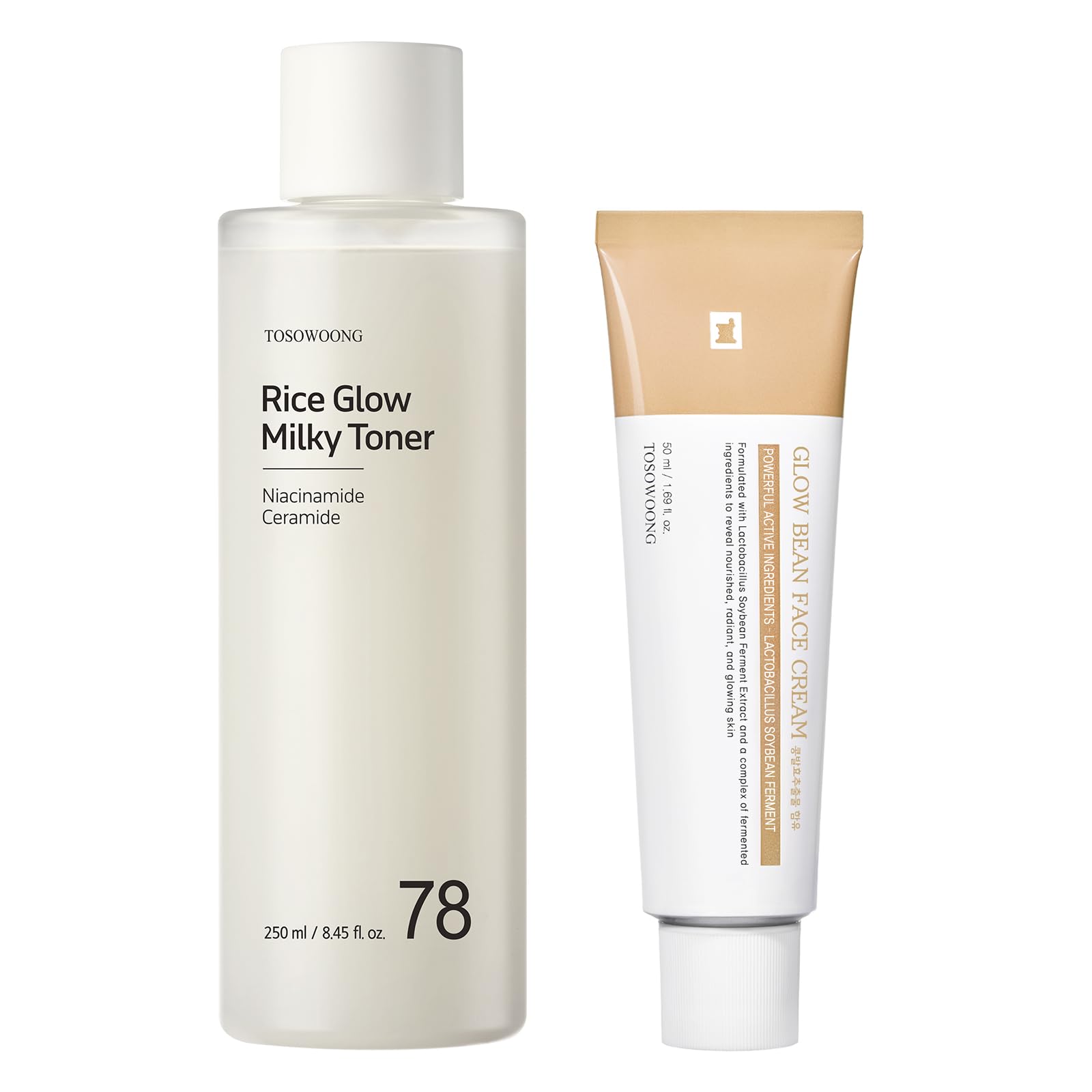 Nourishing Glow Duo: TOSOWOONG Rice Water Toner & Fermented Soybean Cream for Hydrated, Revitalized Skin